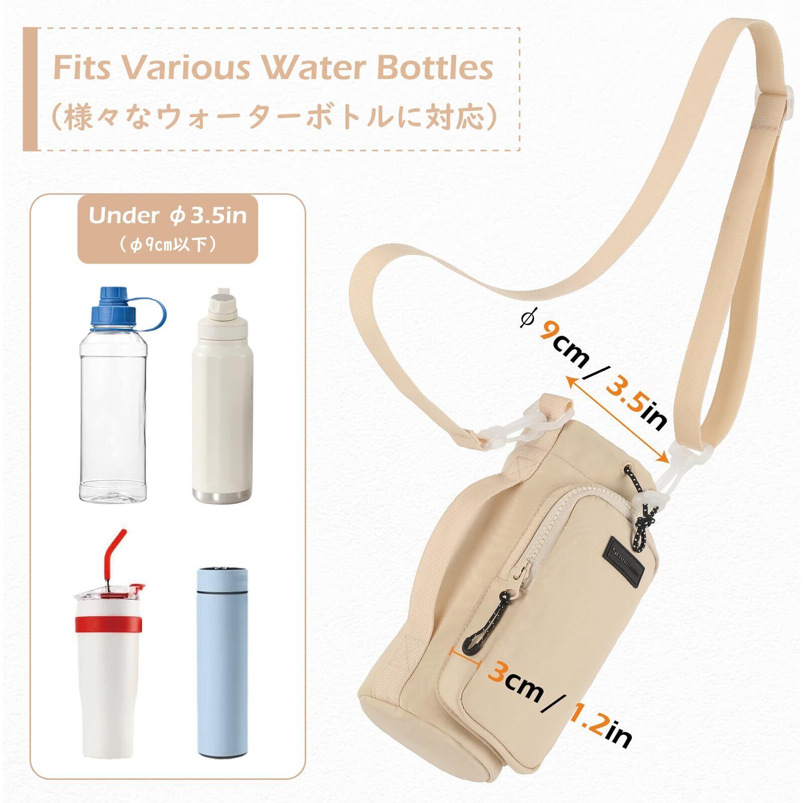 TRIWONDER ペットボトルホルダー 水筒カバー 500ml 1リットル対応 ぺつとボトル ホルダー 保冷 ケース 水筒ホルダー ボトルケース ショルダー ストラップ付 肩掛け可能 スマホ収納 ほるだー (ベージュ)