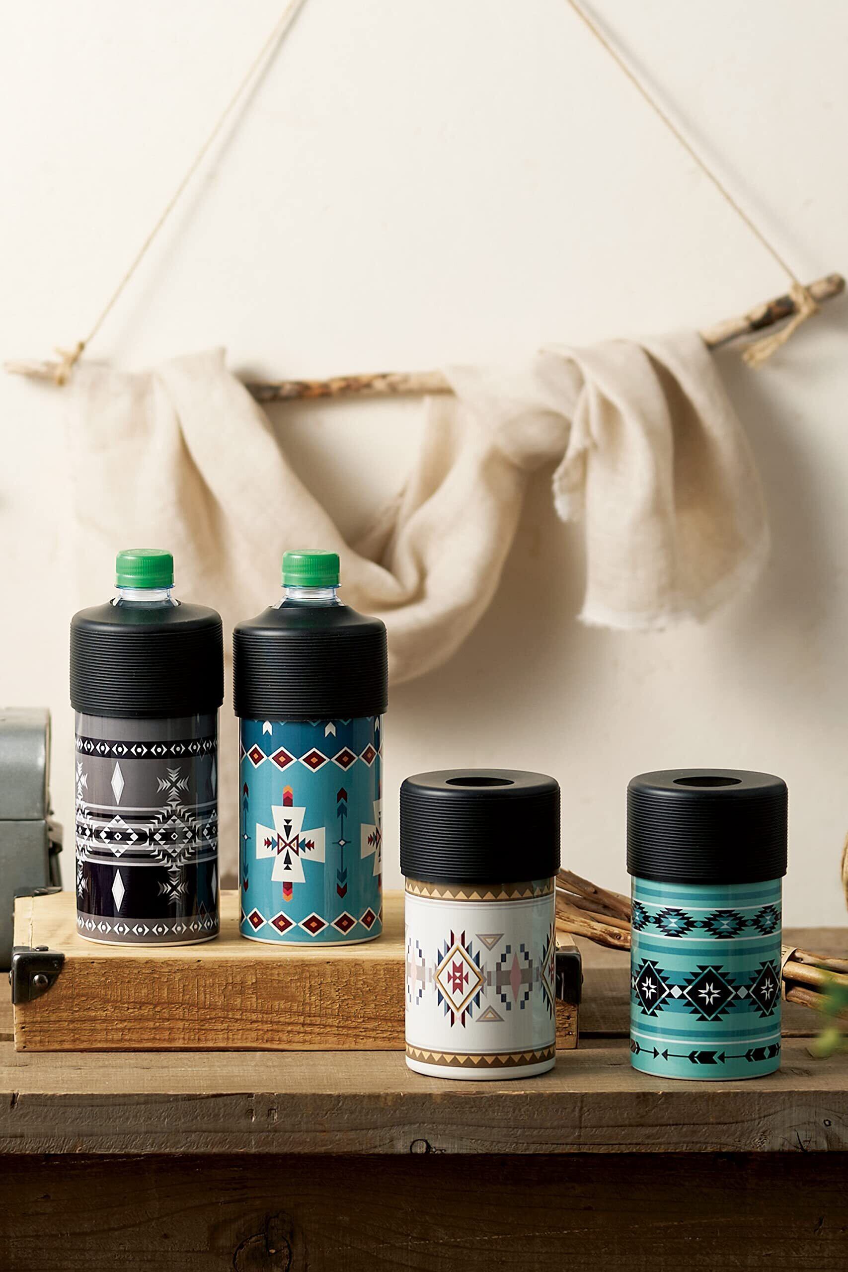 OGURA 四角 670mlも入る ペットボトルホルダー 保冷 タンブラー 真空 断熱 500~670ml対応 ネイティブ柄 (A.ホワイト)