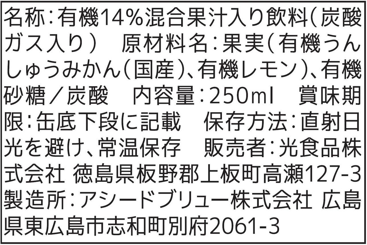 果実(有機うんしゅうみかん(国産)、有機レモン)、有機砂糖/炭酸
