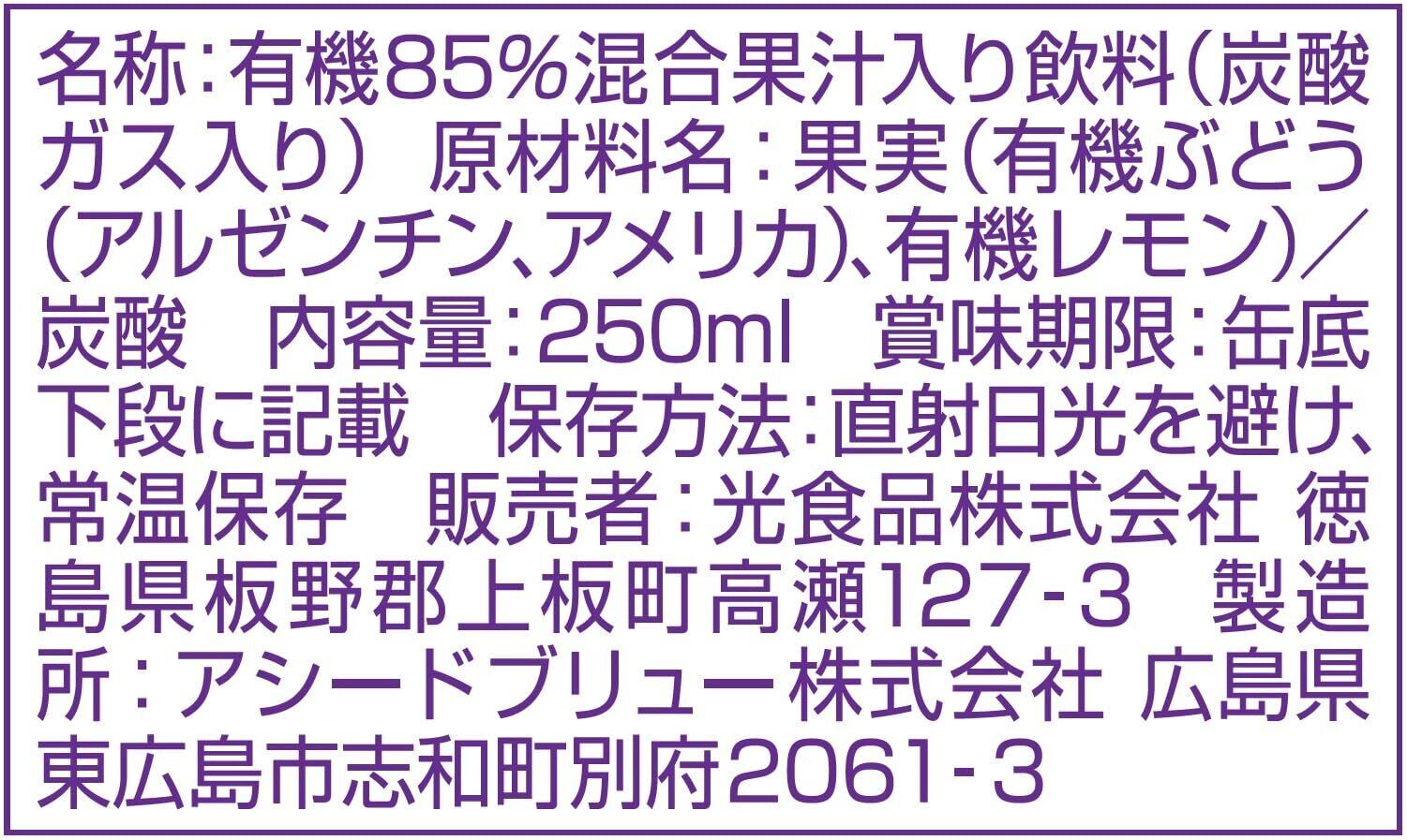 光食品 オーガニックぶどうサイダー+レモン 250ml×30本