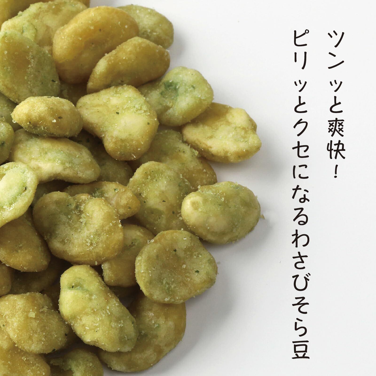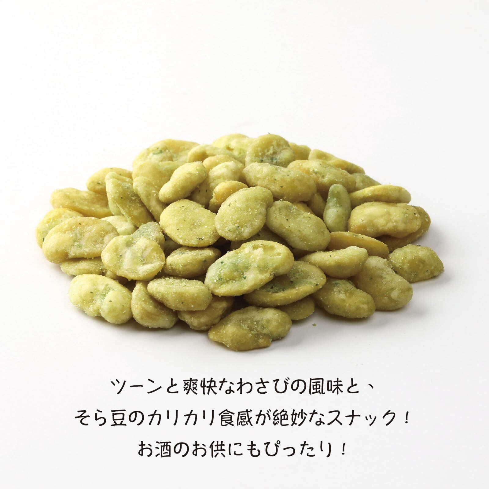 【食べ始めたら止まらない!おつまみやお茶菓子にピッタリの豆菓子】ピリッと辛いわさびの刺激とそら豆の香ばしさが絶妙にマッチ。ビールやハイボールといったお酒のおつまみやお茶のお供に最適な和風テイストの豆菓子です。一度食べたらクセになること間違いなし!