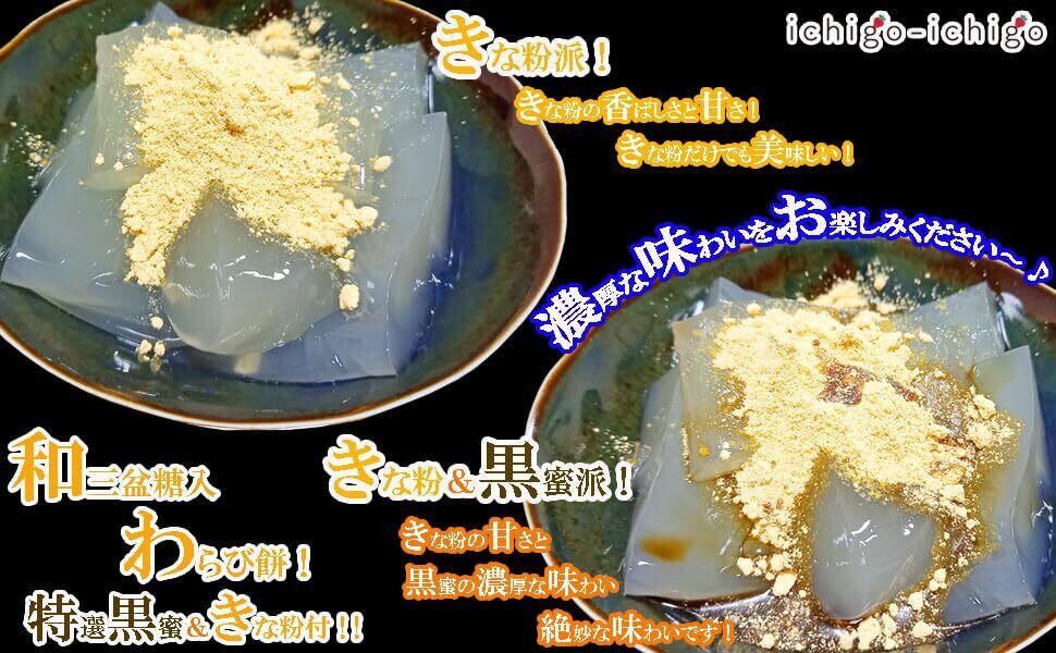ichigo-ichigo 和三盆糖入り わらび餅 ギフト 1箱 300g (150g×2・きな粉×2・黒蜜×2) 和菓子 国産 本わらび餅粉 お菓子 詰め合わせ わらびもち 業務用 母の日ギフト 父の日 プレゼント