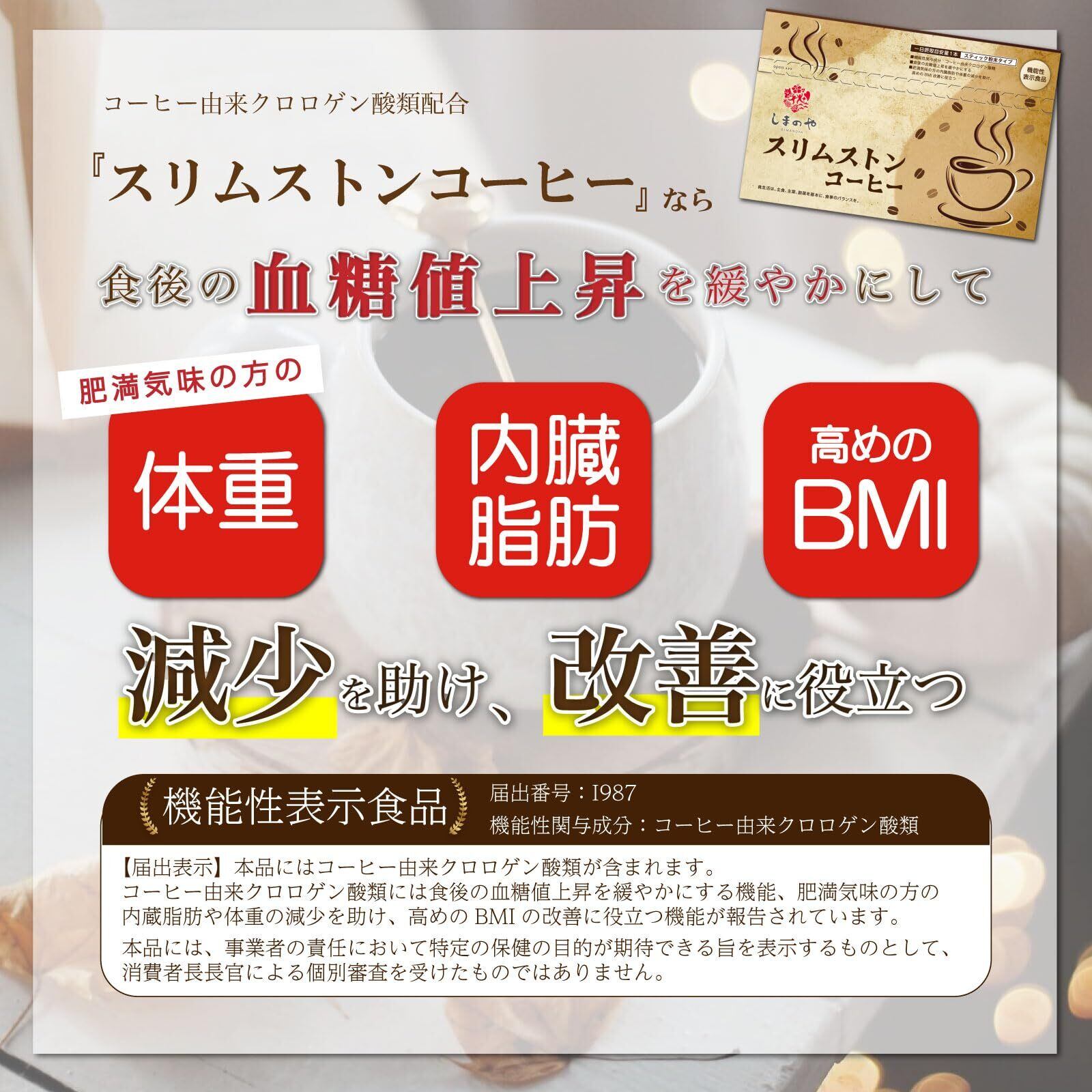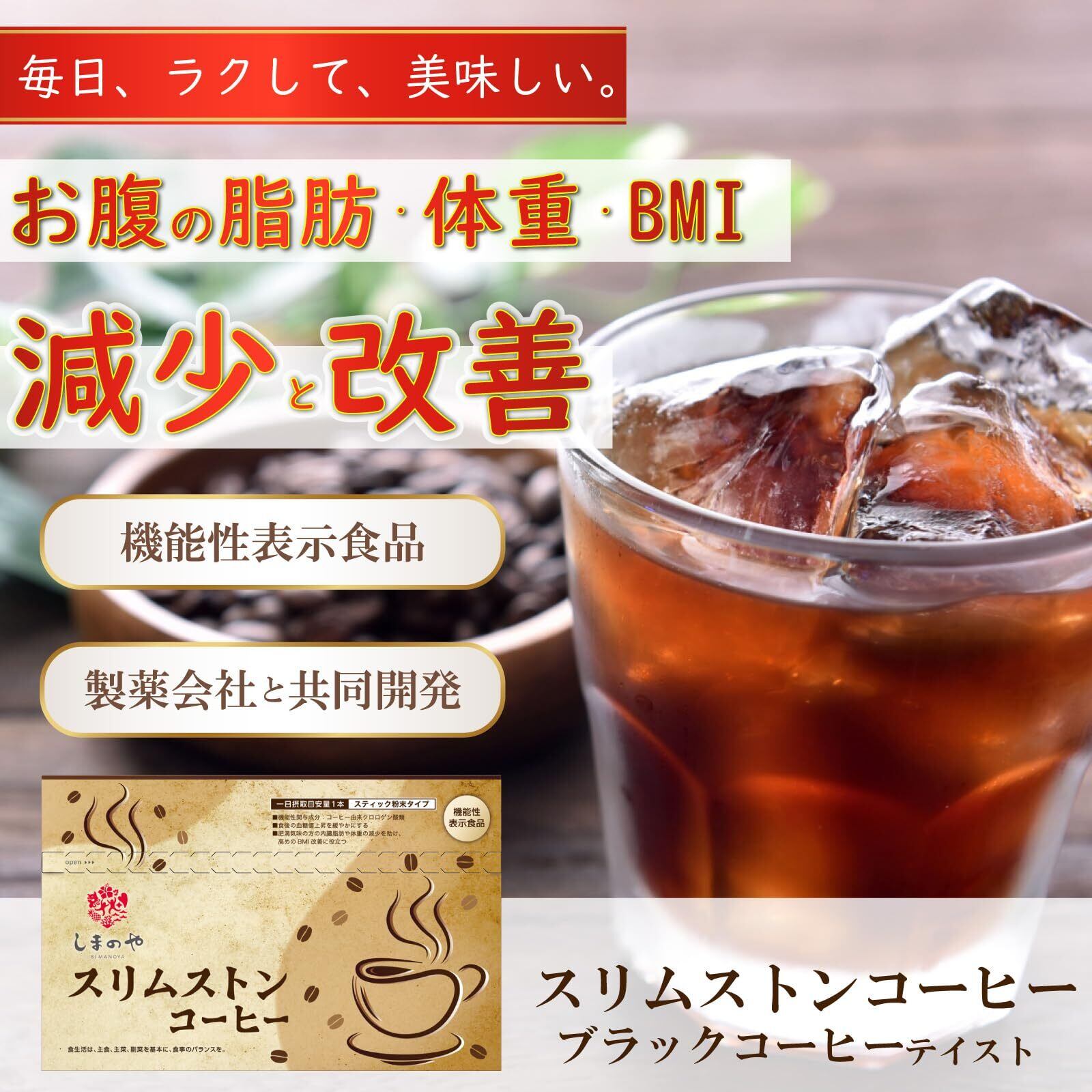 しまのや スリムストンコーヒー ブラックコーヒー テイスト (1箱 2.5g×30本 1ヵ月分) 【 機能性表示食品 】 血糖値 内臓脂肪 体重 BMI 減少と改善 粉末 スティックコーヒー 味にもこだわった
