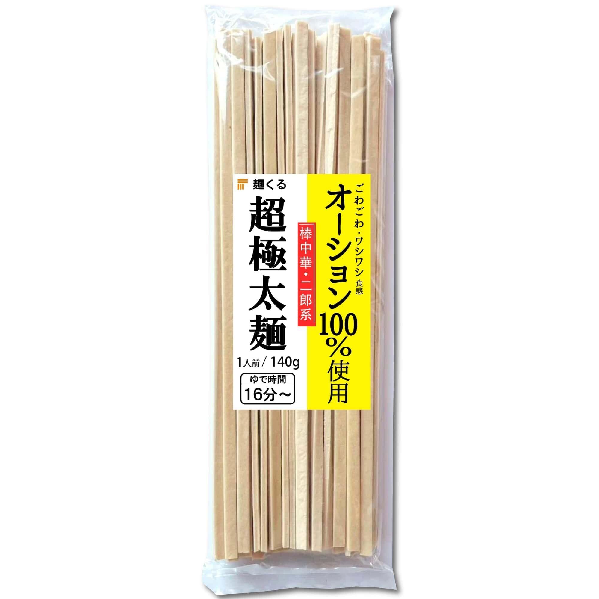 二郎系 超極太 オーション【平打ち・乾麺】ラーメン つけ麺[ごわごわ・ワシワシ食感] 麺くる 140g×20袋