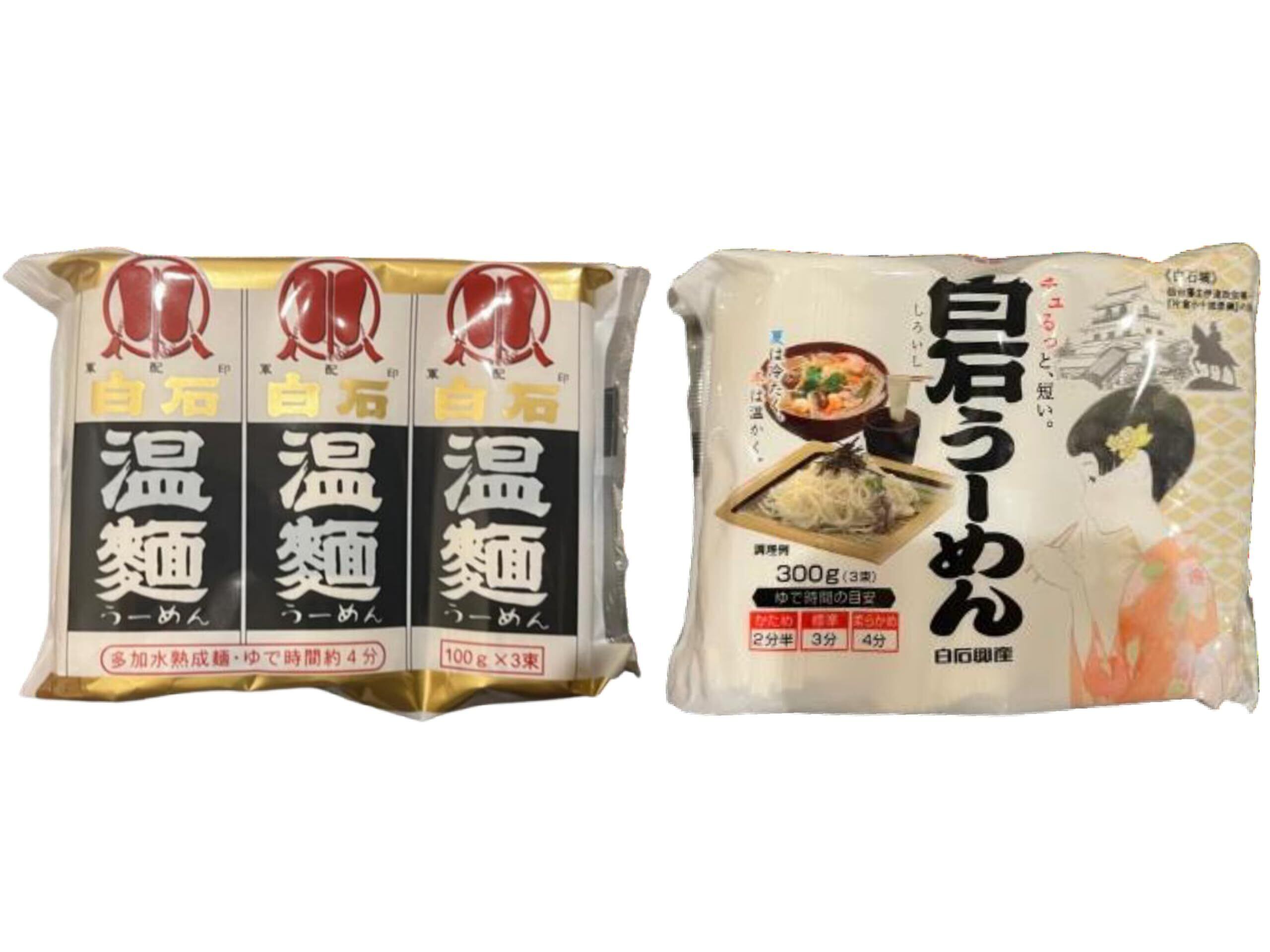 白石温麺 うーめん 食べ比べ ●はたけなか 3入白石温麺 300g ●白石興産 だるま白石温麺 300g あがらいん商店 オリジナルギフトシール付き (各種1袋)