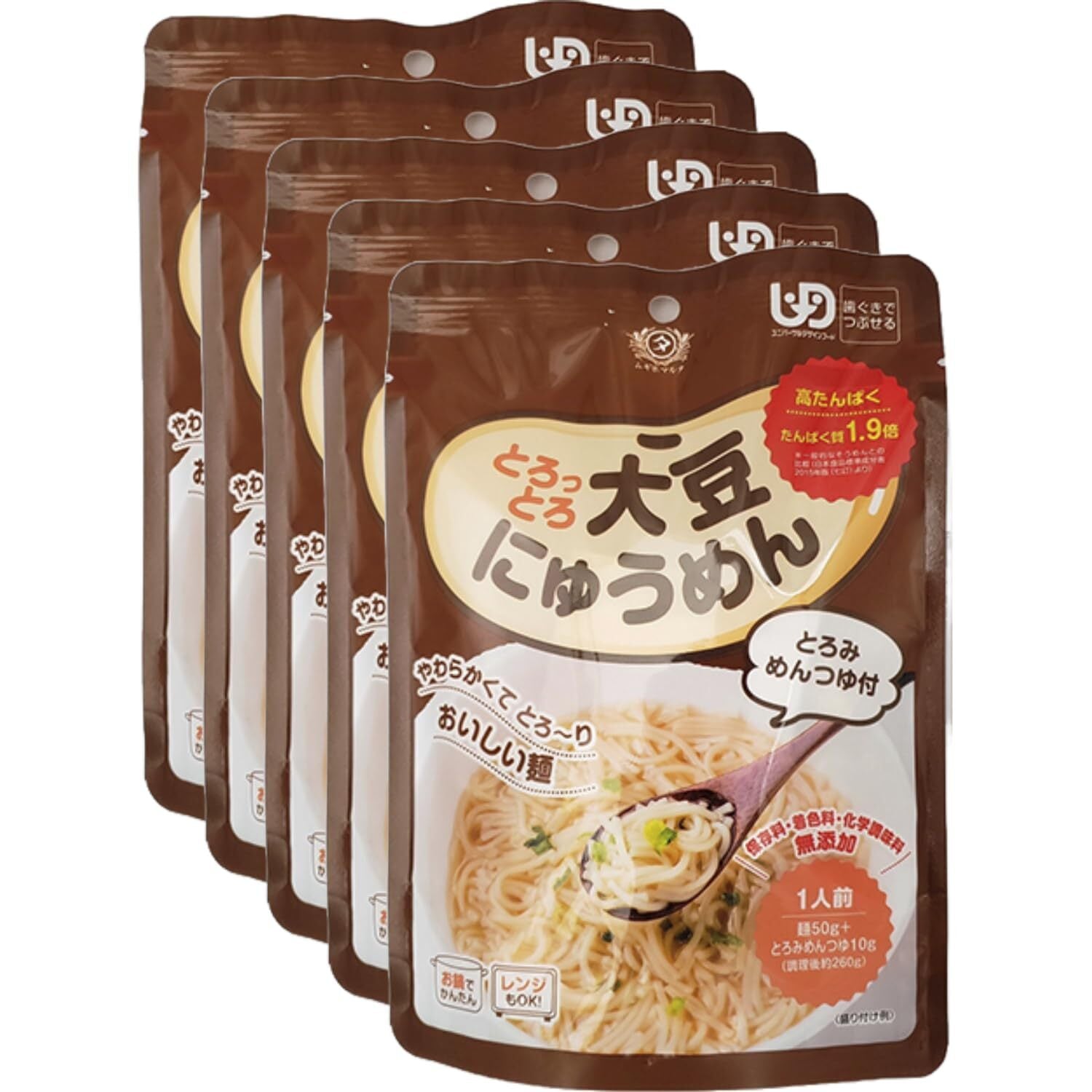 乾麺業界初のユニバーサルデザインフードに認定された高タンパク大豆粉末入りにゅうめん。