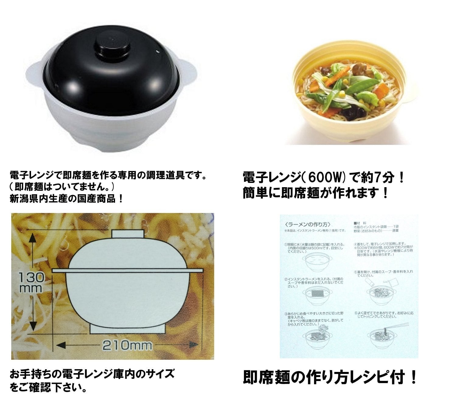 手間も要らずかんたんにおいしいインスタントラーメンが作れる、電子レンジで作る専用どんぶり
