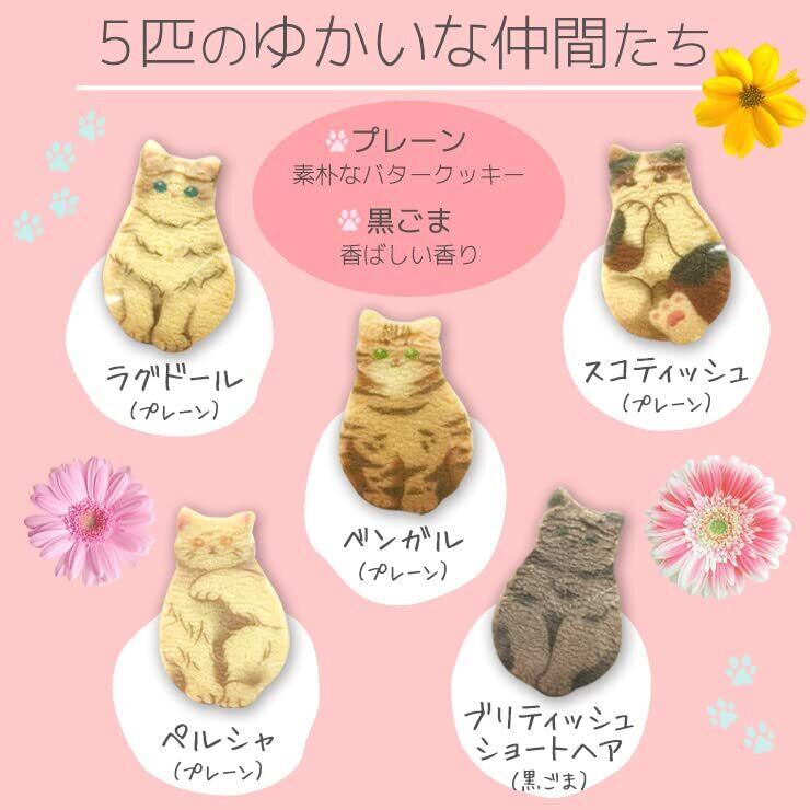 内容品:クッキー10枚(ラグドール・ペルシャ・ベンガル・スコティッシュ(プレーン)・ブリティッシュショートヘア(黒ごま)×各2枚)