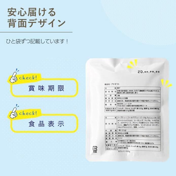 退職や異動、転勤の挨拶に。 大粒でジューシーな白ぶどう果汁入りゼリー【ネオマスカットゼリー】2個と、 カフェインゼロ・甘味料不使用で水出し可能なハーブティー1パックをセットにしました。 ハーブティーはパイナップル&マンゴー、ストロベリー&オレンジ、ピーチ&パッションフルーツ、ベリーモヒートの4種類からランダム封入。 「お世話になりました」メッセージ付きで、 夏のお礼 ギフト、退職 お菓子 個包装プチギフトとして最適です。