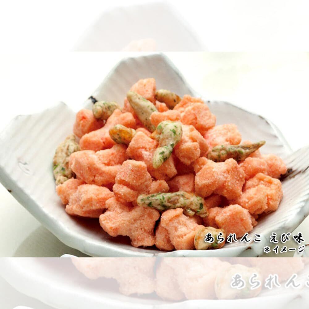 しょっつる味:もち米、植物油、醤油(小麦・大豆を含む)、砂糖、魚醤(しょっつる)、デキストリン、発酵調味料、たん白加水分解物(大豆含む)、加工澱粉、調味料(アミノ酸等)、酸化防止剤(ビタミンE) いか味:もち米、植物油、いかシーズニング(小麦、えび、大豆を含む)、いか粉、えびパウダー、(小麦・大豆を含む)、食塩、調味料(アミノ酸等)、香料(いか・大豆由来)、ソルビット、甘味料(カンゾウ・ステビア)、酸化防止剤(ビタミンE)、カラメル色素 えび味:もち米、植物油、食塩、えびパウダー(小麦・大豆を含む)、えび、たん白加水分解物(大豆を含む)、調味料(アミノ酸等)、紅麹色素、酸化防止剤(ビタミンE)