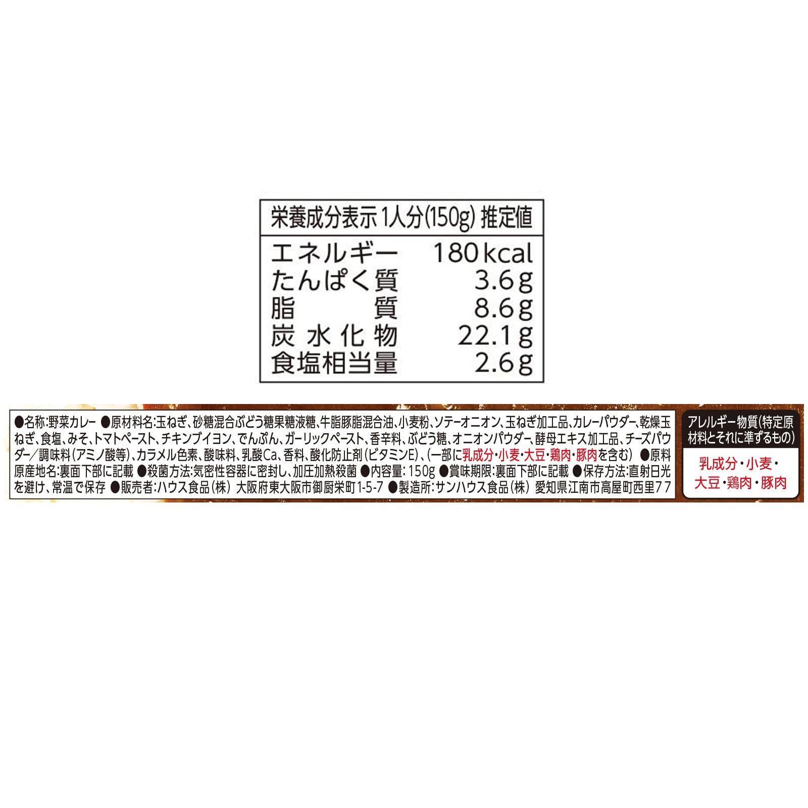 玉ねぎ、砂糖混合ぶどう糖果糖液糖、牛脂豚脂混合油、小麦粉、ソテーオニオン、玉ねぎ加工品、カレーパウダー、乾燥玉ねぎ、食塩、みそ、トマトペースト、チキンブイヨン、でんぷん、ガーリックペースト、香辛料、ぶどう糖、オニオンパウダー、酵母エキス加工品、チーズパウダー/調味料(アミノ酸等)、カラメル色素、酸味料、乳酸Ca、香料、酸化防止剤(ビタミンE)、(一部に乳成分・小麦・大豆・鶏肉・豚肉を含む)