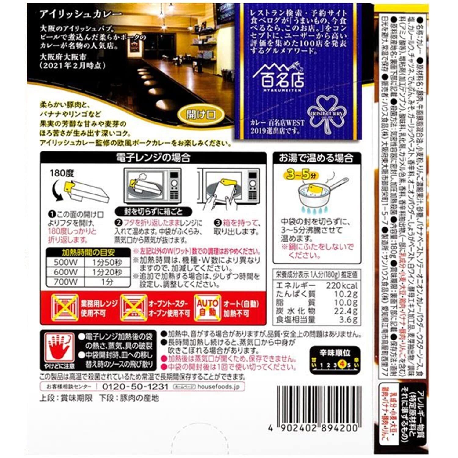 ■食べログの口コミ評価が高い「カレー百名店」に選定された店舗のこだわりの味わいを再現したレトルトカレーなので、人気店の味わいを現地に行かずに自宅で手軽に楽しむことができます。※カレー百名店2019選出店です。■柔らかい豚肉と、バナナやリンゴなど果実の芳醇な甘みや麦芽のほろ苦さが生み出す深いコク。■アイリッシュカレー監修の欧風ポークカレーをお楽しみください。