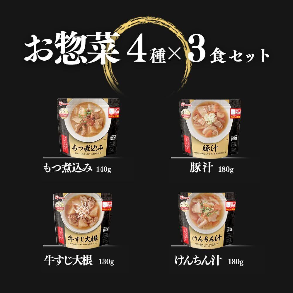 【12食セット】(4種各3食セット)レンジアップ おつまみセット(豚汁・もつ煮込み・牛すじ大根・けんちん汁) アイリスオーヤマ