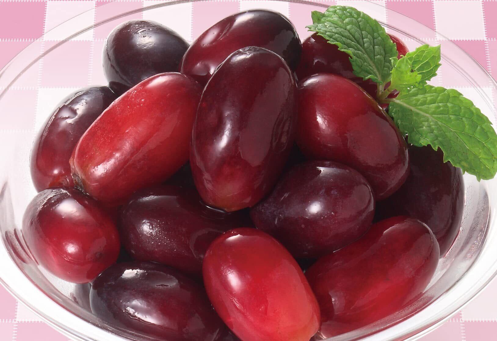 チリ産の種のないぶどうです。大きさ・色み・形状を細かく選別して商品化しております。約16~20mmと、ひとくちで食べやすい大きさです。種がなく、皮も剥かずにそのままお召し上がりいただけます。糖度が高いので半解凍でアイス代わりに召しあがっても満足感があります。解凍してゼリーに入れたり、凍ったままヨーグルトに混ぜたりと食べ方は様々。粒ぞろいのためお菓子作りにもうってつけ。1袋に約110~130粒入っています。