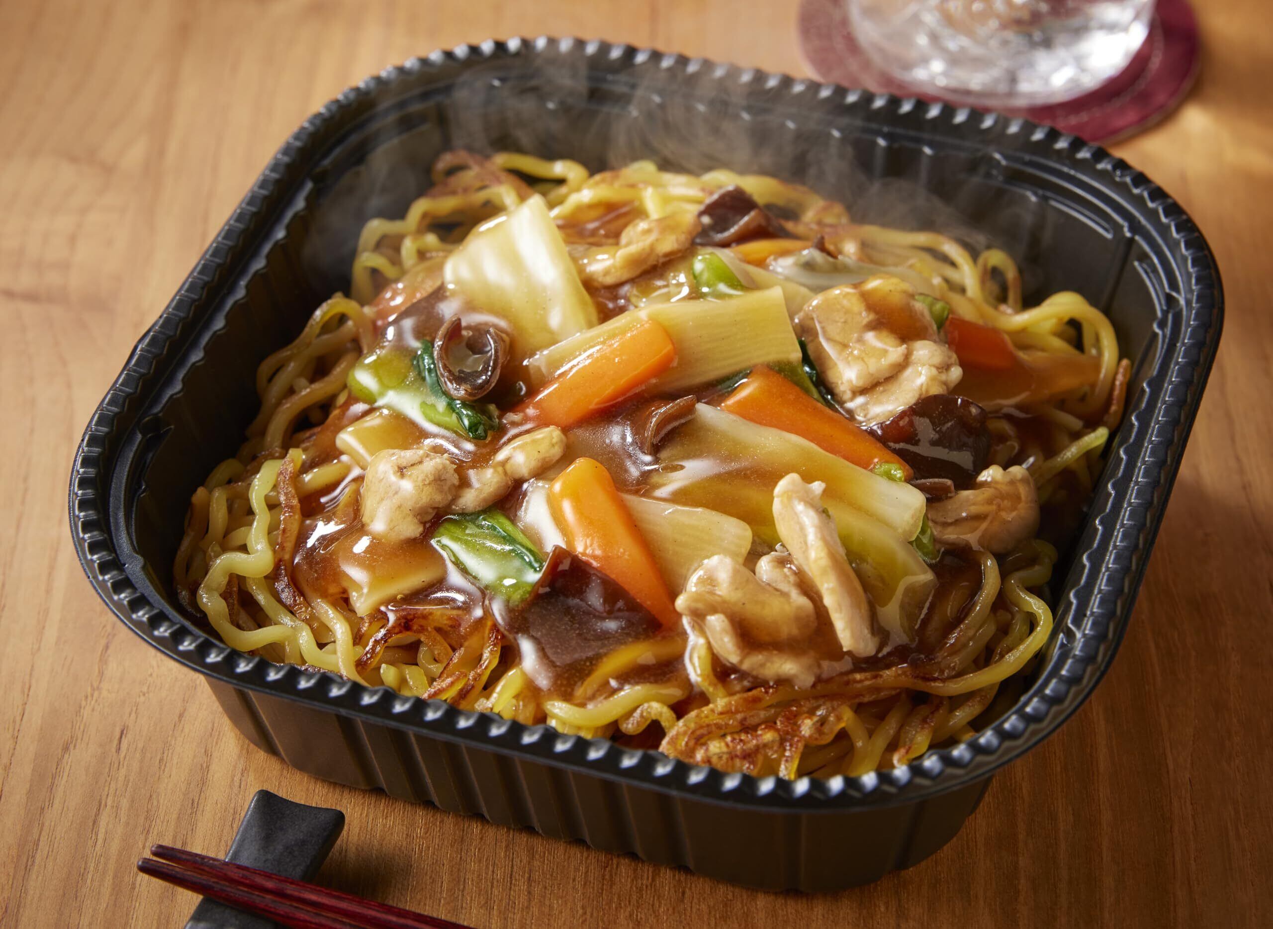 ●電子レンジで調理する五目あんかけ焼そばです。●香ばしく焼いた麺と6種類の具がたっぷり入ったこだわりのあんが特長です。●自家製の麺は、しっかり焼いて急速凍結。電子レンジ調理でさらにこんがり色づき、香ばしく仕上がるどく時の技術です。●醬油とオイスターソースをベースにした旨味たっぷりのあんには、白菜、筍、豚肉、にんじん、チンゲン菜、きくらげの6種の具材入りで食べ応えも満点。●簡便調理が可能なトレイ入り商品です。