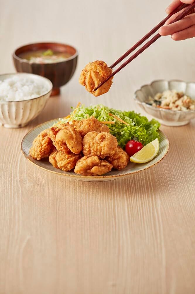 若鶏もも肉を二度揚げ製法でジューシーに仕上げました。