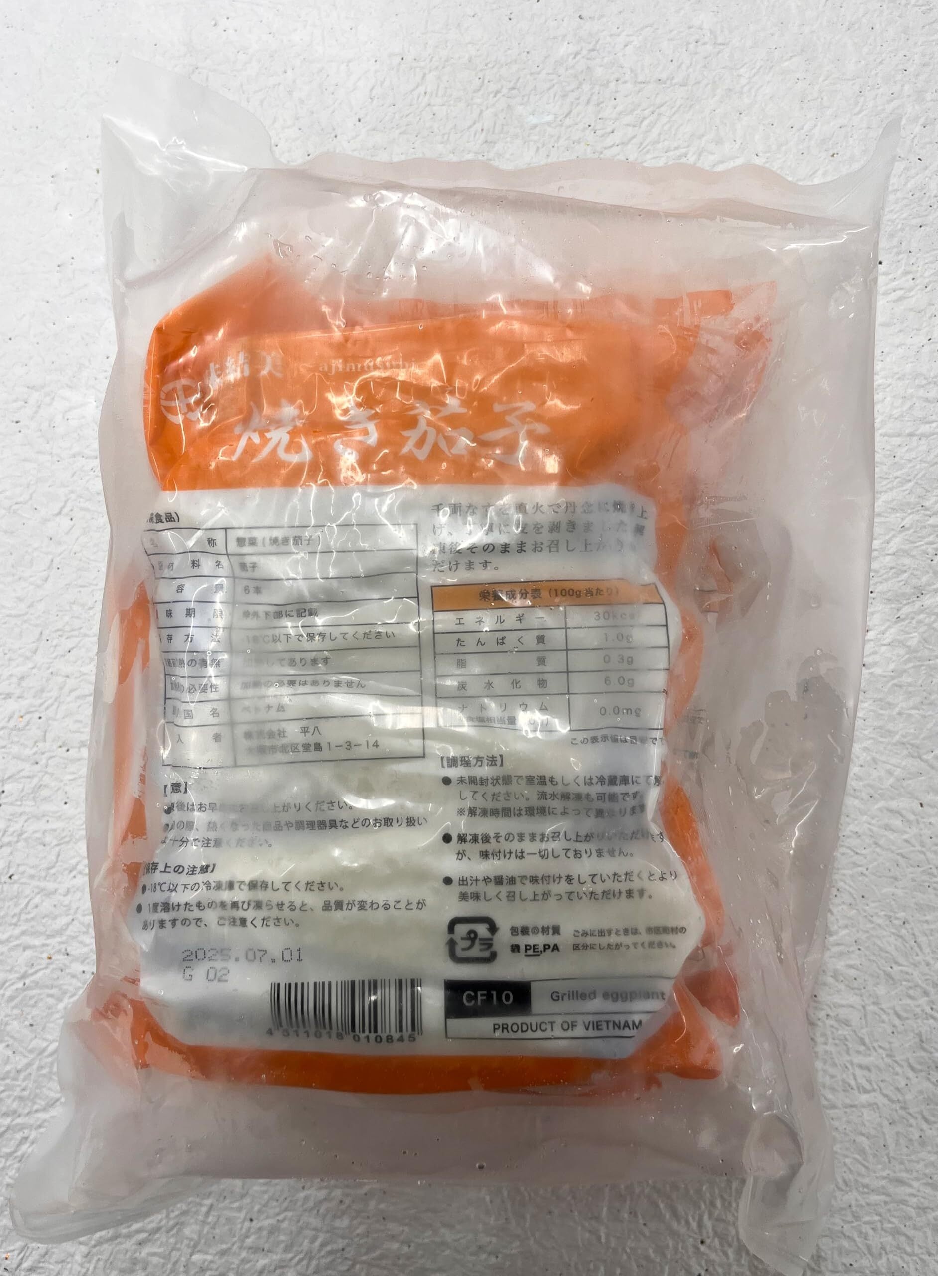 日本のなすの品種の一つ、千両なすをベトナムで栽培して収穫し直火で丹念に焼き上げ、丁寧に皮を剥いて焼きなすにしました。解凍後そのままお召し上がりいただけます。1㎏18本入りの大容量ですが使う分だけ解凍して頂けます。味付けをしていないので、お好みでポン酢やめんつゆなどかけても良し、煮びたしなどにも便利に使用して頂ける商品です。