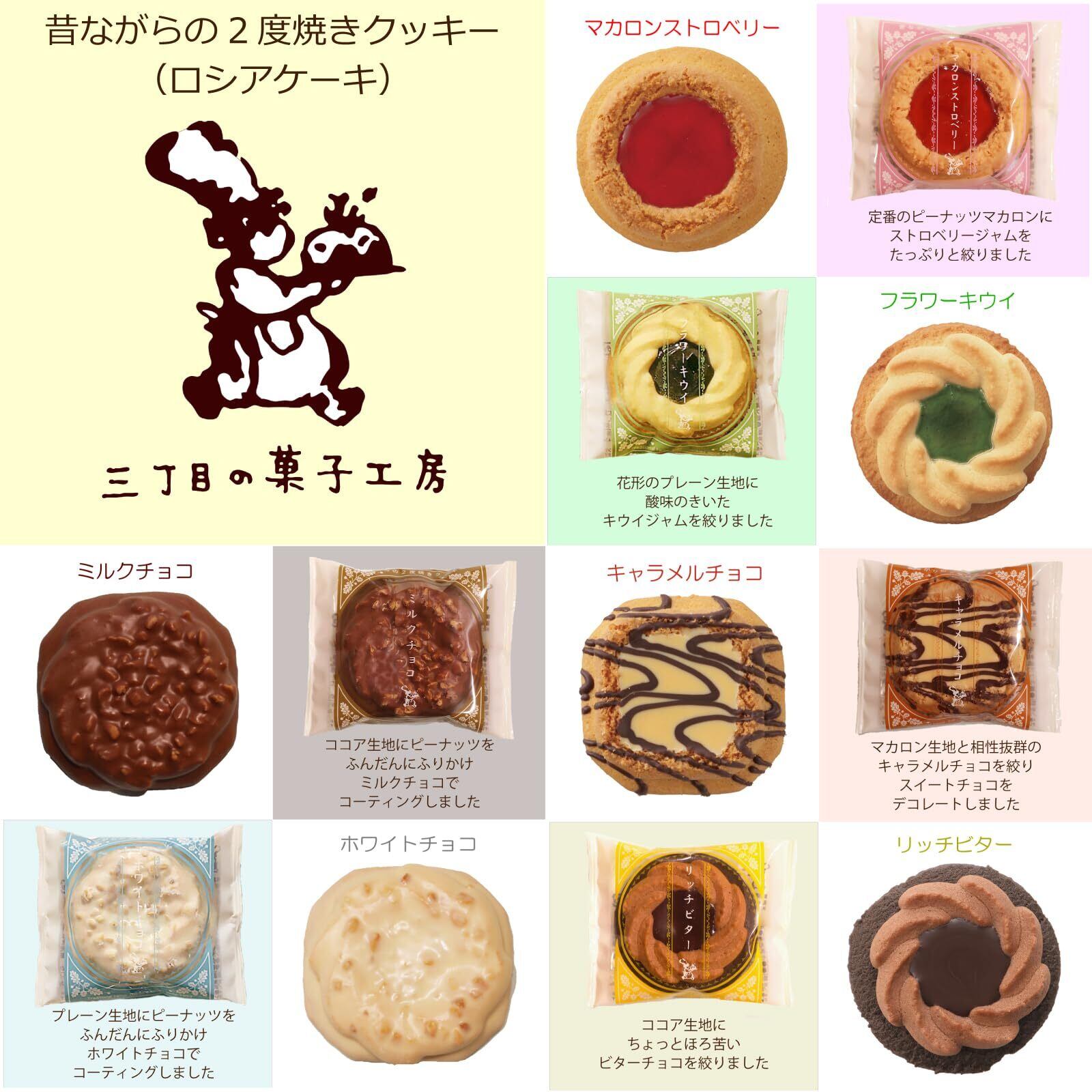 三丁目の菓子工房 昔ながらの2度焼きクッキー(ロシアケーキ) (6種, 24個)