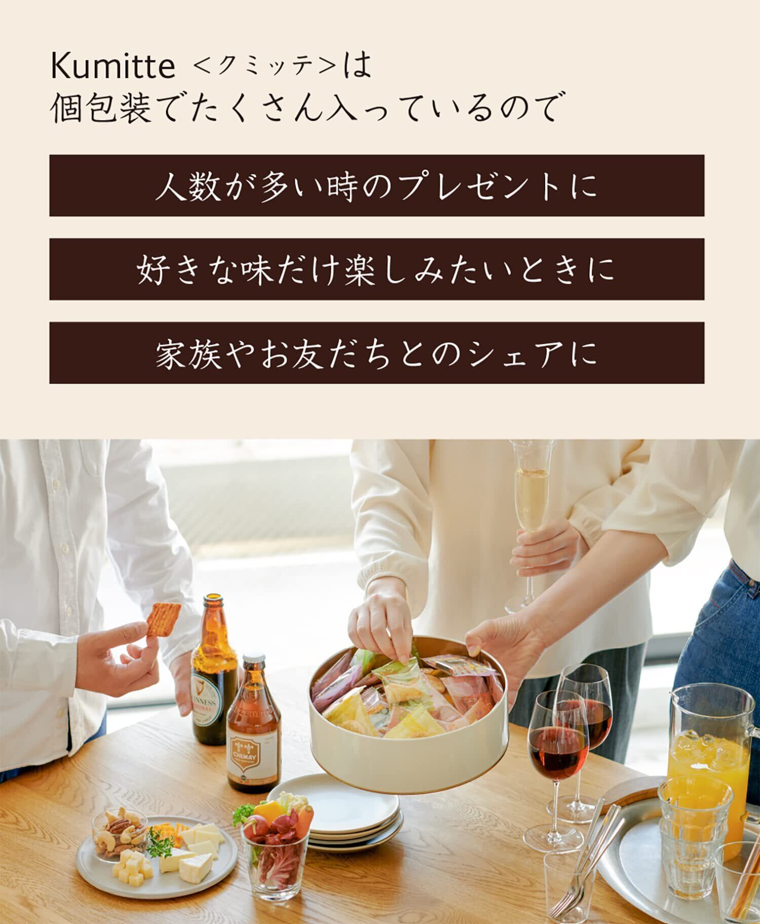 「中央軒煎餅 Kumitte」は、香ばしい風味とサクサクとした食感が特長の日本伝統の煎餅です!厳選された素材を使用し、丁寧に焼き上げた煎餅は、どなたでも楽しめる絶品スナックです。豊かな旨味とともに、心温まるひとときをお届けいたします。