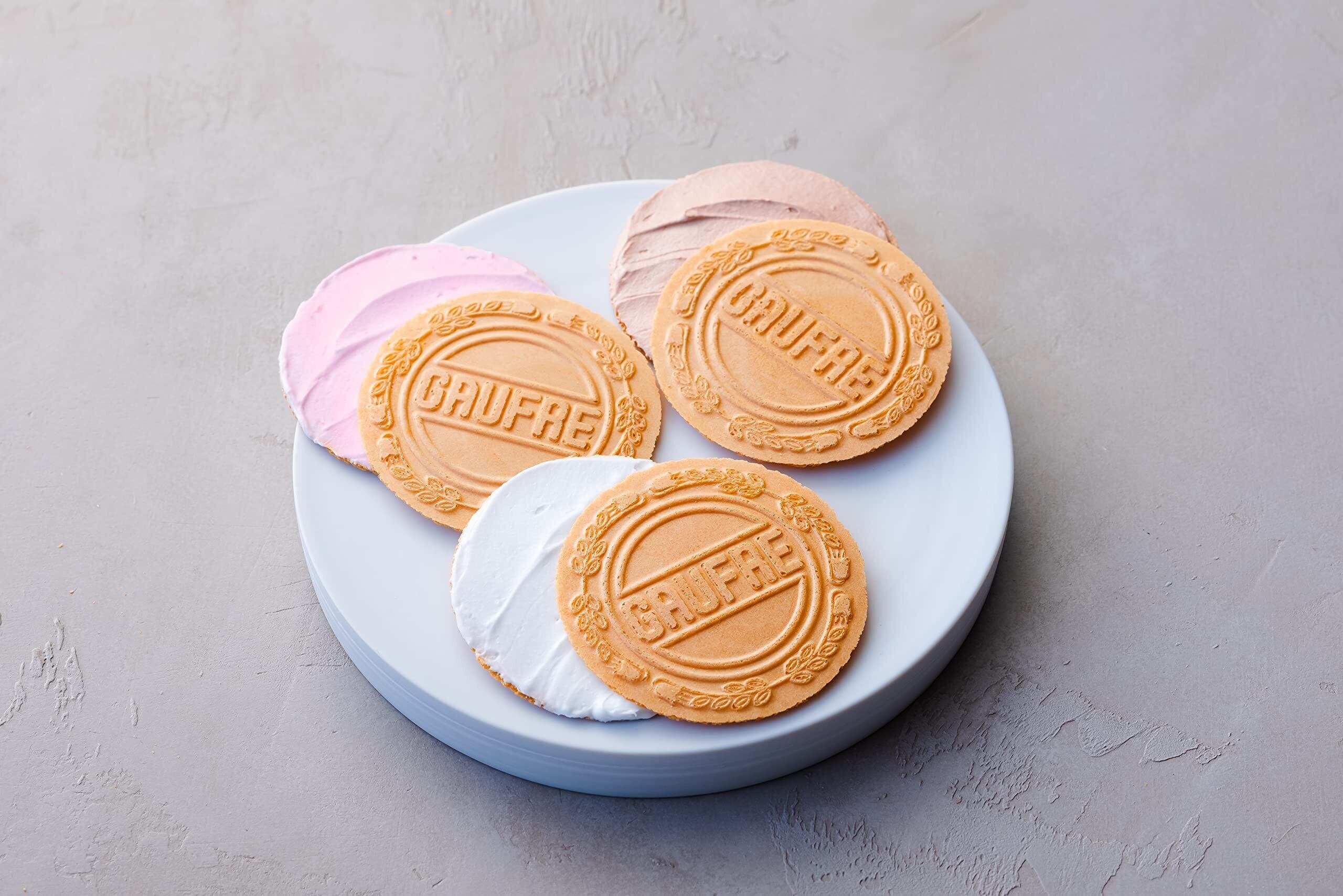 伝統菓子ゴーフルのさっくりとした食感をそのままに、小さなサイズに仕上げました。 バニラ、ストロベリー、チョコレート風味クリームの5種類の詰め合わせです。