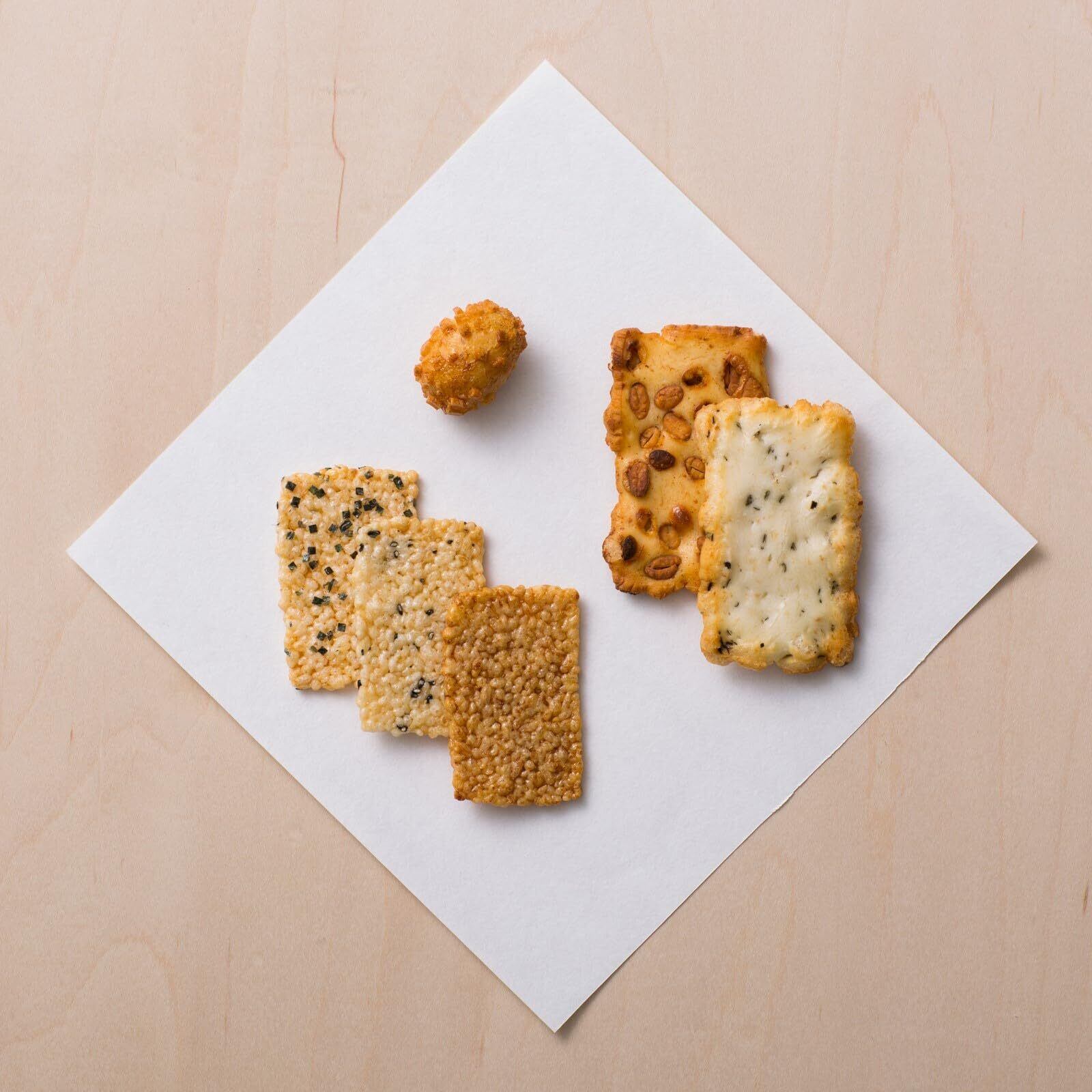 内容:慶長[醤油/うすくち醬油/しぶき海苔/胡麻 各6枚]、慶凰[醤油/塩 各5粒]、かきもち[豆柿/昆布 各3枚]
