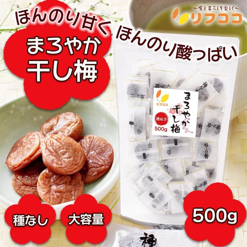 リフココ まろやか干し梅 種なし梅 個包装 500g(約130個) 大容量 業務用サイズ 保存に便利なスタンド袋入り 干し 梅 梅干し 種なし梅 お菓子 うめ 熱中症 対策 おやつ お手軽 お茶請け 梅お菓子