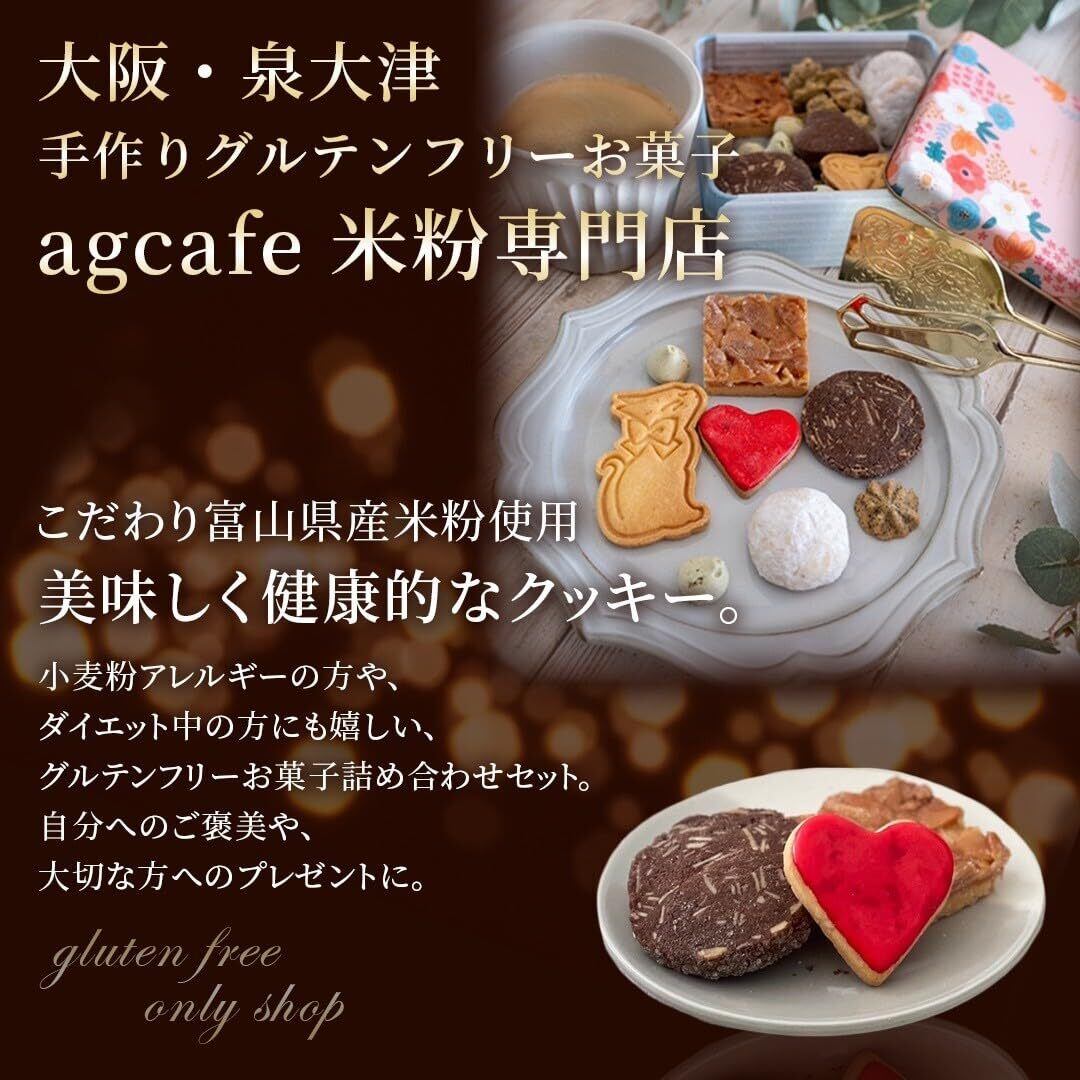 大阪・泉大津 手作りグルテンフリーお菓子【agcafe 米粉専門店】。こだわりの富山県産米粉使用で美味しく健康的なクッキー。小麦粉アレルギーの方や、ダイエット中の方にも嬉しい、グルテンフリーお菓子詰め合わせセット。自分のご褒美や大切な人へのプレゼントにオススメです。