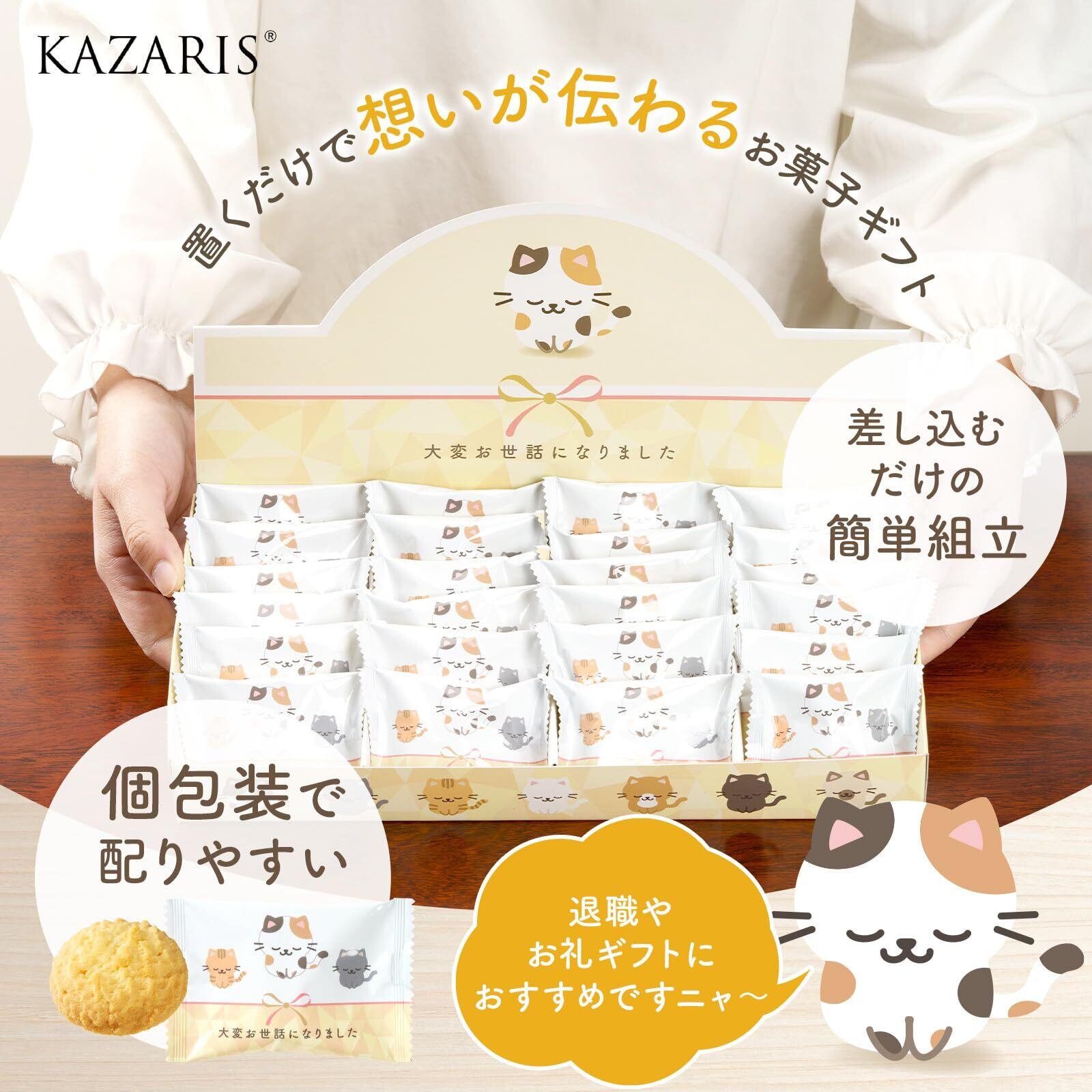 「KAZARIS」の退職お菓子詰め合わせは、感謝の気持ちを伝えるための特別なギフトです!個包装されたクッキーが24枚入ったこの詰め合わせは、退職のお祝いにぴったりの一品です。