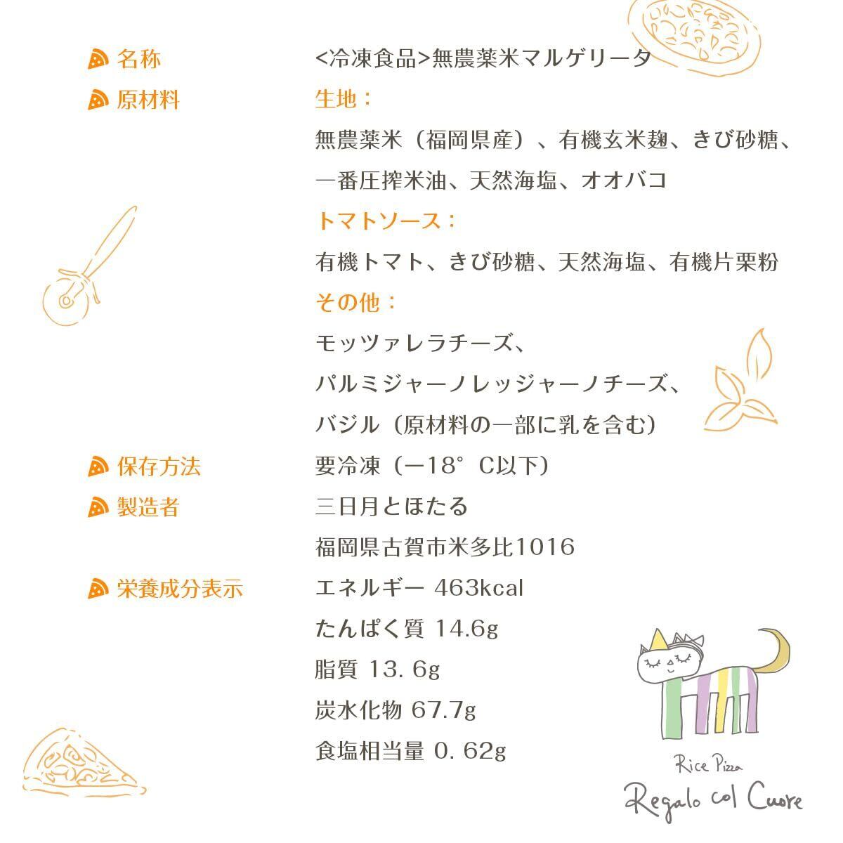 ※当商品は【冷凍食品】になります。 福岡県宗像市の豊かな大地で育まれた、農薬を使用せずに育てられたお米。そのお米の優しい甘さと、もっちりとした食感を最大限に活かした、特別なグルテンフリー冷凍ピザが誕生しました。 「大切な人に、安心しておいしいものを楽しんでほしい」 そんな想いから生まれたこのピザは、お子様からご年配の方、小麦アレルギーをお持ちの方まで、皆様で分け隔てなくお召し上がりいただけます。 福岡の太陽をたっぷり浴びたお米の風味を活かし、トッピングにもこだわりました(トッピングは商品によって異なります)。化学調味料などは一切使用せず、素材本来の味わいを大切にしています。 ご自宅で手軽に楽しめる本格的な味わい。忙しい日の夕食にはもちろん、ちょっとした集まりや、大切な方への贈り物としても最適です。 福岡の自然の恵みが詰まった、安心・安全なグルテンフリーピザを、ぜひ一度お試しください。きっと、大切な人も笑顔になってくれるはずです。