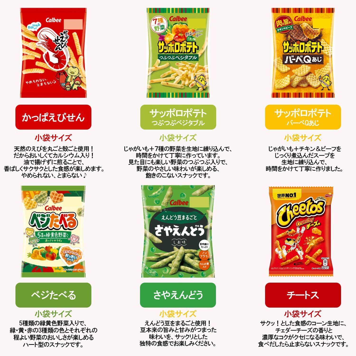 【セット内容】 スナック 菓子 15種 各2個 合計30個 チートス チーズ味 24g 、ポテトチップスうすしお 24g 、ポテトチップスコンソメ 24g 、スコーンやみつきバーベキュー 33g 、マイクポップコーン 16g 、サッポロポテトつぶつぶベジタブル 24g 、サッポロポテトバーベQあじ 24g 、ベジたべる 18g 、なげわ うましおバター味 18g 、かっぱえびせん 26g 、さやえんどう 26g 、キャラメルコーン 20g 、ピザポテト 22g 、ポリンキー あっさりコーン 27g 、ポテコ うましお味 21g