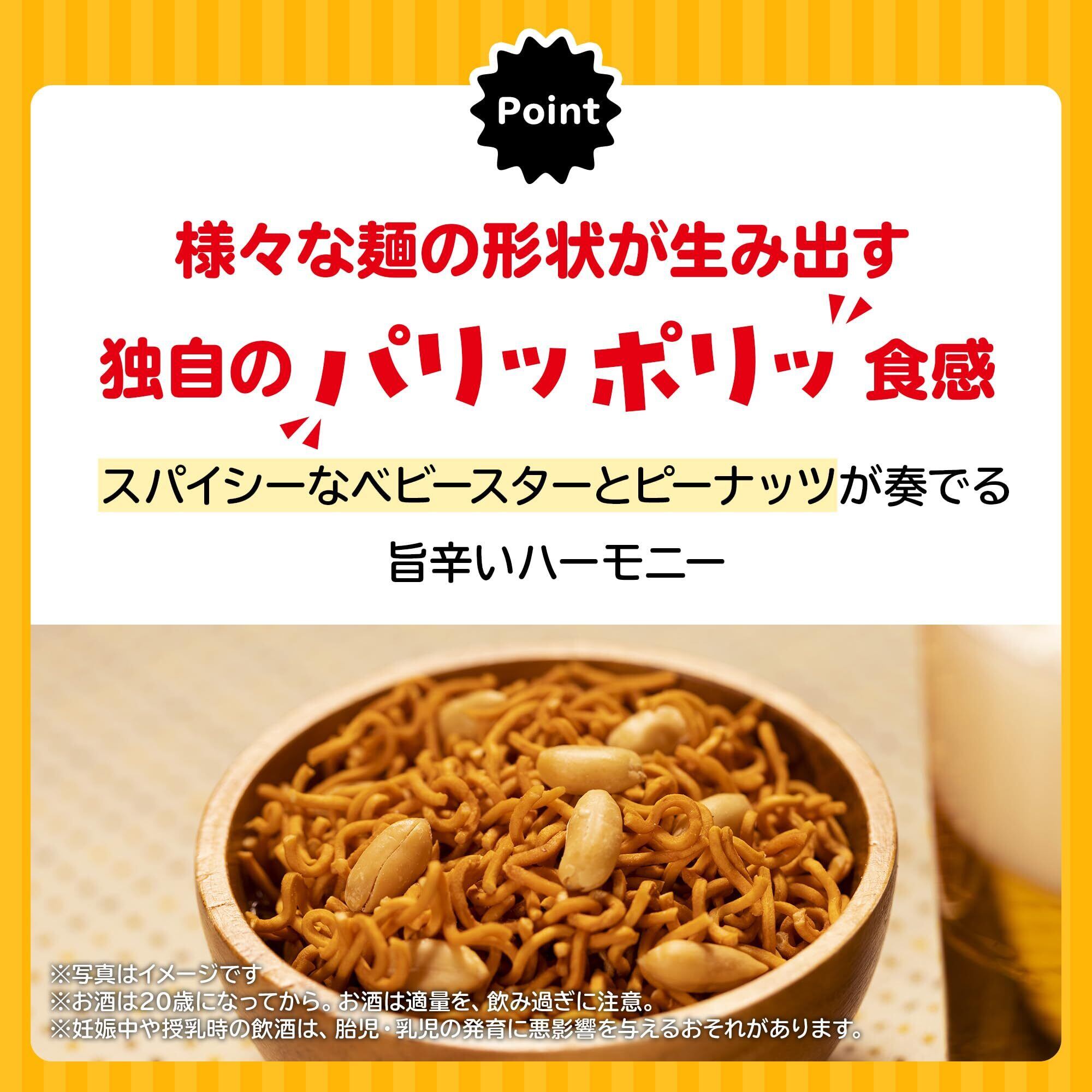 スパイシーなベビースターとピーナッツのミックスが絶妙です。チキンの旨みと唐辛子の辛みがクセになるおいしさ。