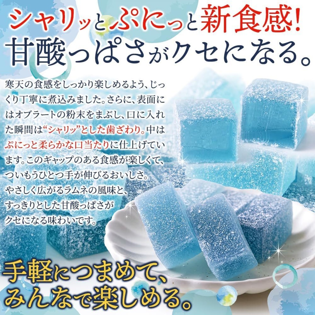 【夏の定番「ラムネ」を寒天ゼリーに】ほどよい弾力と、さっぱりとした味わい! 外はシャリッ、中はぷにっ。 ラムネの風味が引き立ちます!