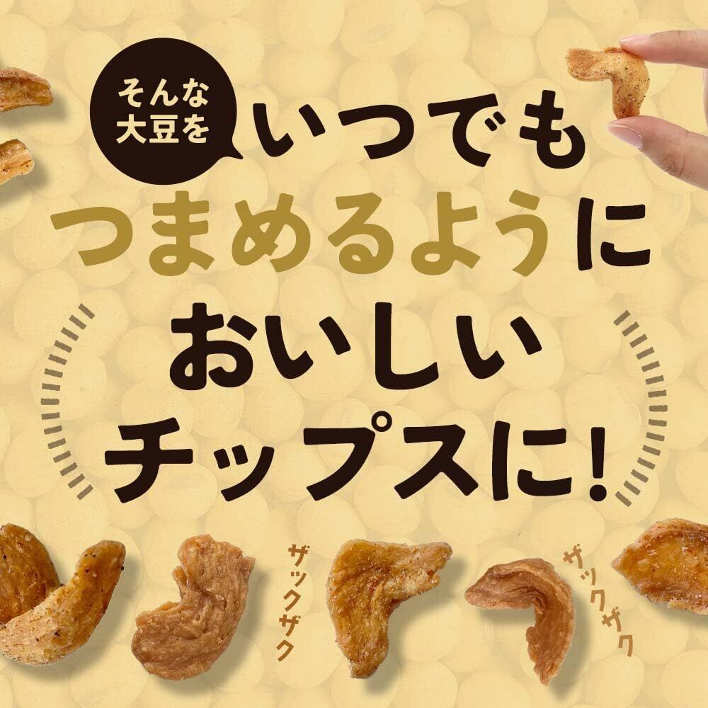 【まるで鶏皮チップス!】大豆ミートチップス、こまめにつまみーと。ダイエット・スポーツ。美容の強い味方、大豆。低糖質、高たんぱく、イソフラボンが含まれます。そんな大豆をいつでもつまめるようにおいしいチップスにしました。【大豆ミートチップスとは】お店でも見かけることが増えてきた大豆チップスは、大豆から油を取り除いたもの(脱脂大豆)をチップスにしたものです。大豆ミートチップスは、第四大豆をお肉に近づける加工をしてできた「大豆ミート」をチップスにしました。【こだわりの形状】大豆ミートを食べてお肉を食べているような感覚になるのは、大豆ミートの繊維のおかげ。こまめにつまみーとは、鶏肉の繊維をイメージして加工しているので、まるで鶏皮チップスを食べているかのよう!ザクザク感、カリカリ感がやみつきに!【国内工場にて生産されています】分別生産流通管理済み大豆を使用しています。おやつでおつまみで、おいしくつまんでタンパク質補給!