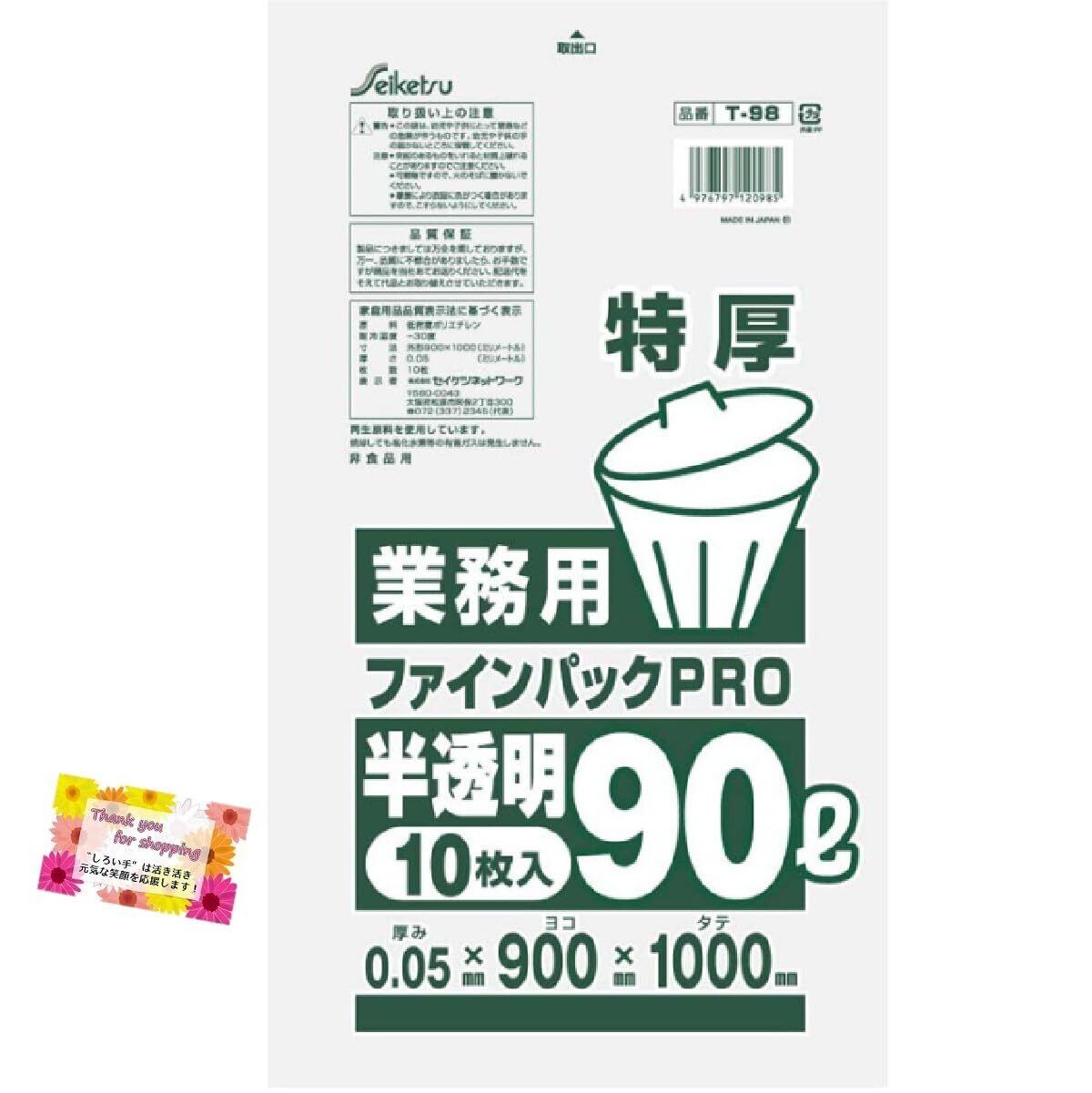 【タフでビッグサイズの業務用ポリ袋】 業務用ごみ袋 ファインパックPRO 半透明 90Lごみの量が多い事業所・お店などにピッタリ 焼却しても塩化水素等の有害ガスは発生なし 非食品用 特厚 0.05×900×1000mm 10枚入