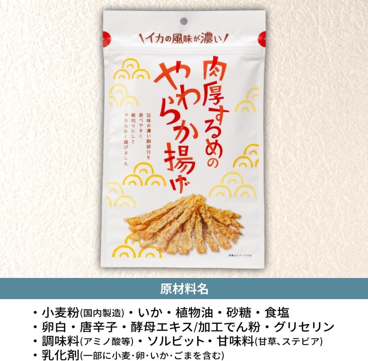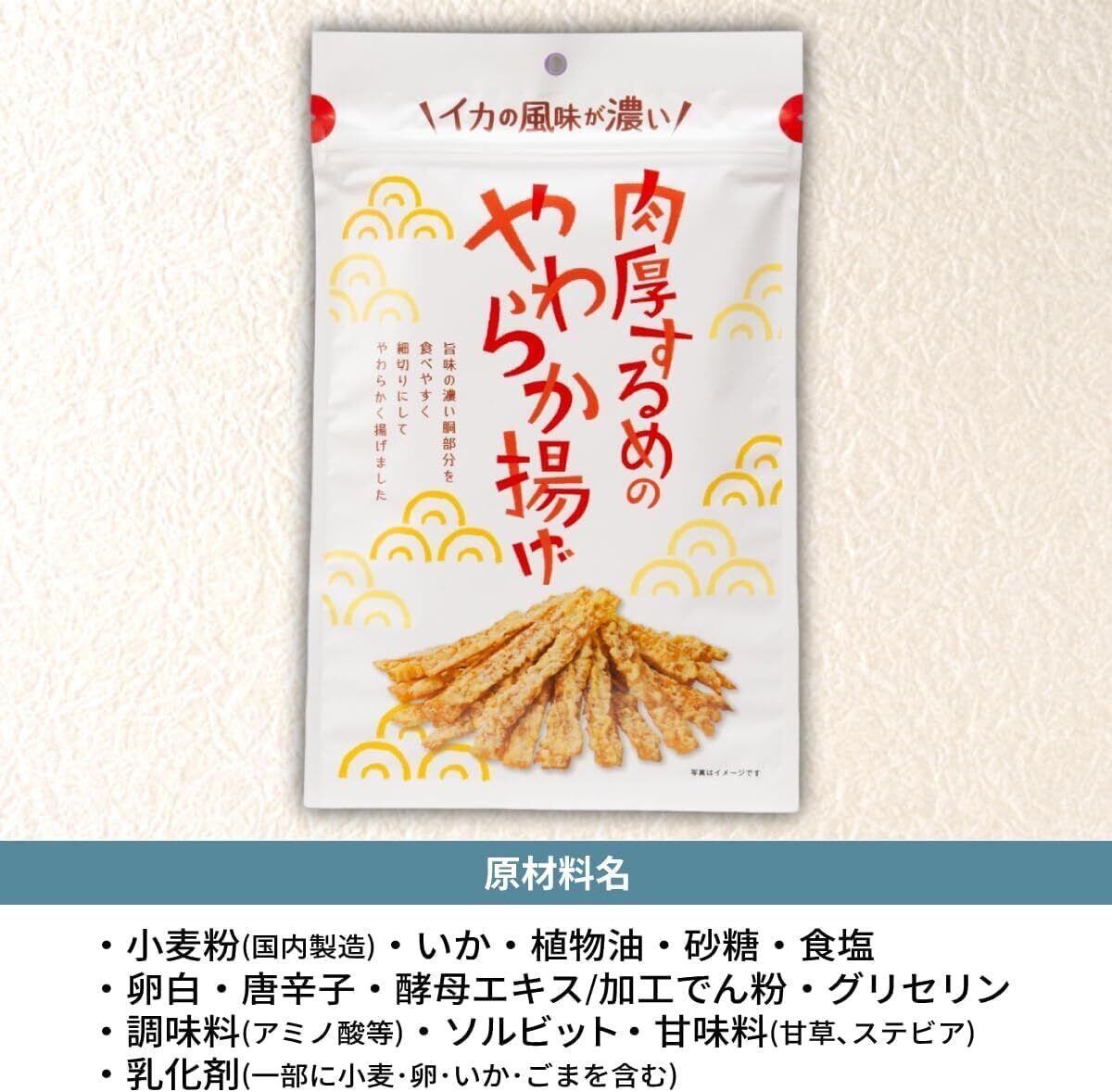 「まるか食品公式通販」のするめ揚げは、肉厚でやわらかな食感が楽しめるおつまみです!旨辛味のスルメと一緒に、贅沢な味わいが堪能できるセットになっています。この商品を使用することで、ビールやお酒との相性抜群の本格的なおつまみが簡単に楽しめるので、パーティーや特別な日のギフトにも最適です。