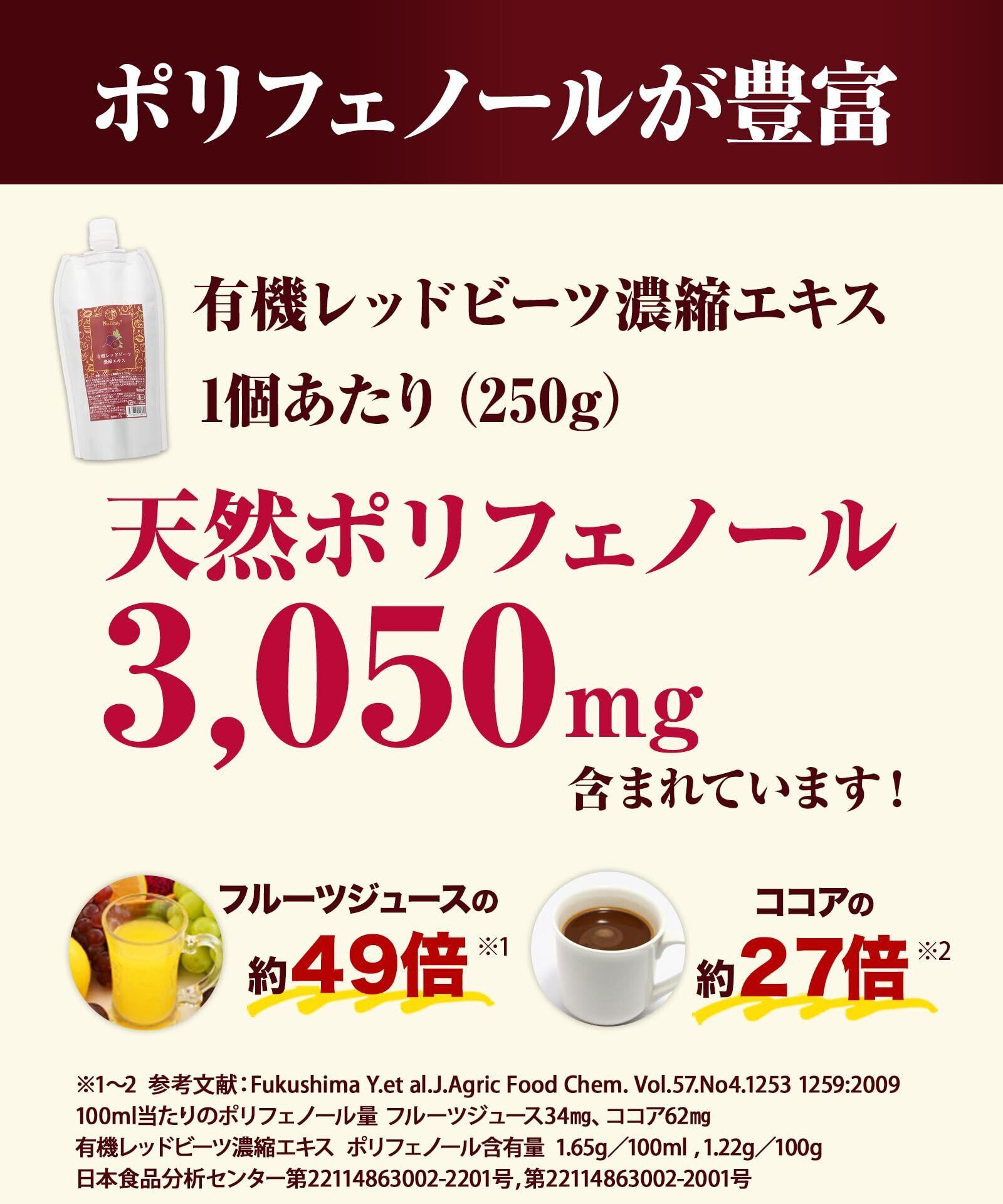 ・高濃縮エキス:家庭で簡単に2500g分のビーツジュースが楽しめます!