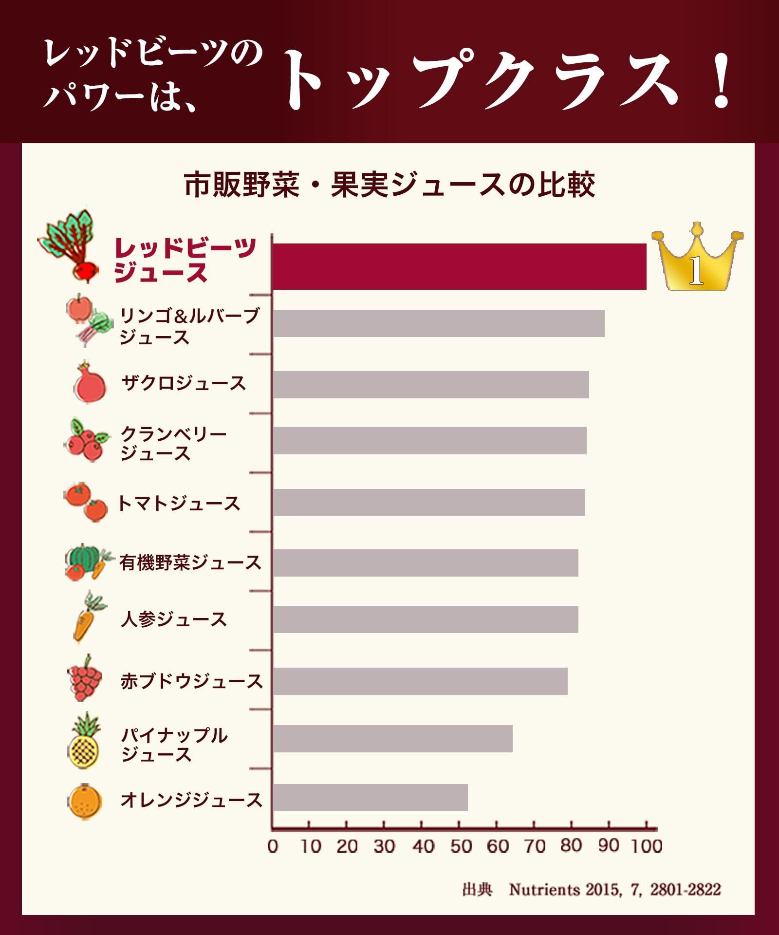 【レッドビーツとは?】別名ビートルート。栄養素が豊富なことから「奇跡の野菜」と呼ばれます。世界のアスリートもビーツジュース(ビートジュース)を愛飲しています。ノーベル賞受賞成分「NO(一酸化窒素)」のもととなる硝酸イオンをはじめ、ベタレイン(ポリフェノール)、ラフィノース(オリゴ糖)、葉酸、鉄、カリウムなどの栄養素が豊富。いつまでも若々しくいたい方、めぐりのある生活を送りたい方、理想の運動パフォーマンスを目指したい方、妊活中の方に嬉しいスーパーフードです。