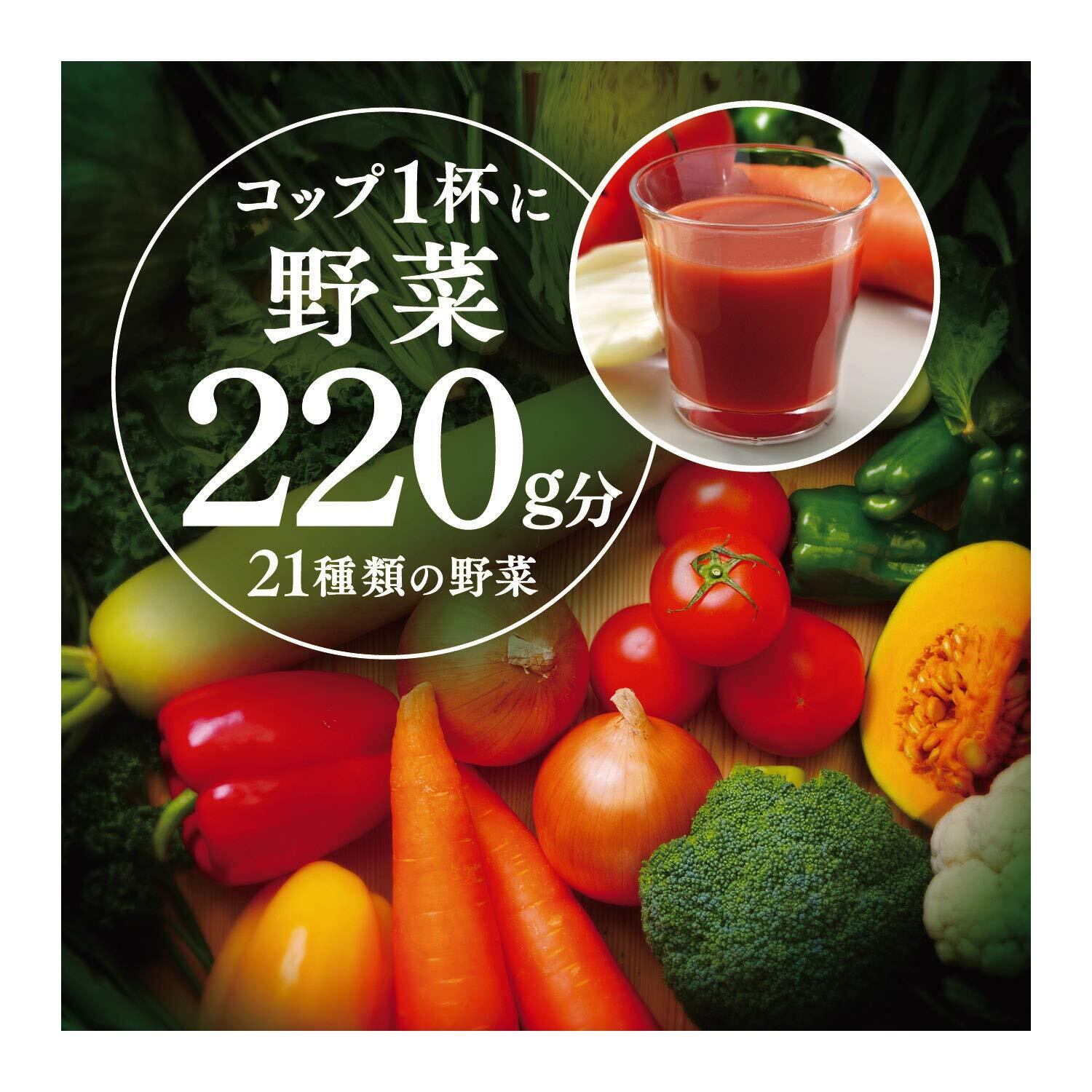 原材料:トマトジュース(濃縮トマト還元)、野菜ジュース(にんじん(濃縮還元)、セルリー、レタス(濃縮還元)、大根(濃縮還元)、よもぎ(濃縮還元)、小松菜、ケール、ビーツ、ほうれん草、チンゲンサイ(濃縮還元)、たまねぎ(濃縮還元)など
