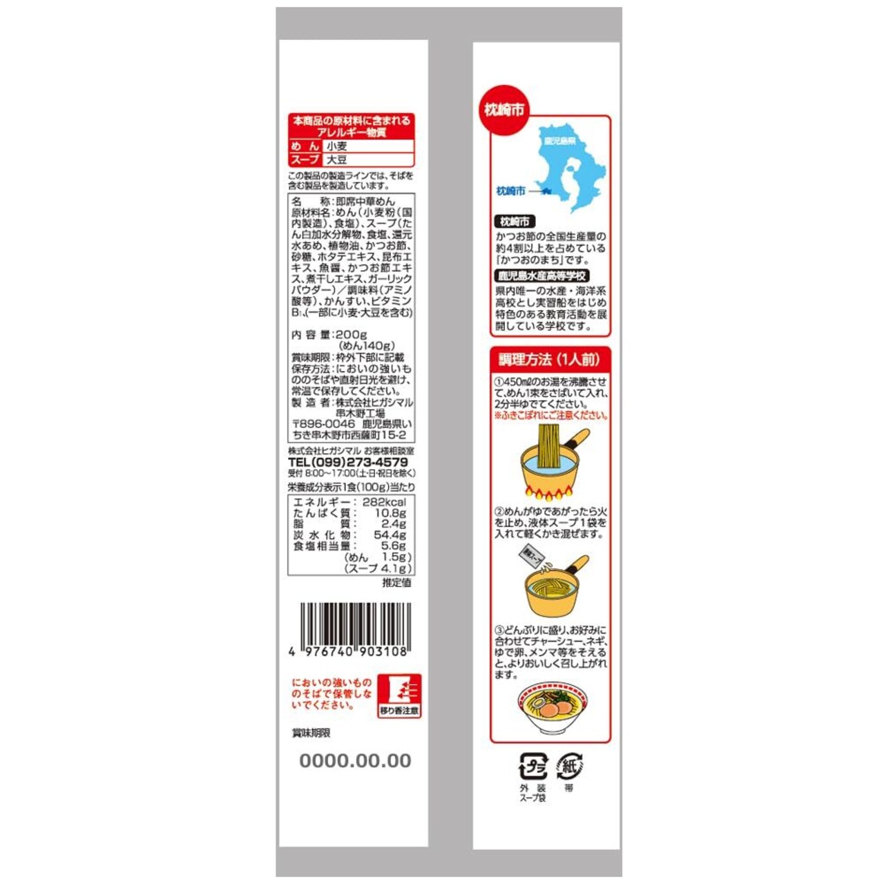 鹿児島水産高校とのコラボ商品「かつおラーメン」。 県内唯一の水産・海洋系高校とし実習船をはじめ特色のある教育活動を展開している学校です。 鹿児島・枕崎産かつお節を使用した透明感のあるスープとノンフライの棒状ラーメンを合わせました。鹿児島県枕崎市はかつお節の全国生産量の4割以上を占めている『かつおのまち』です。