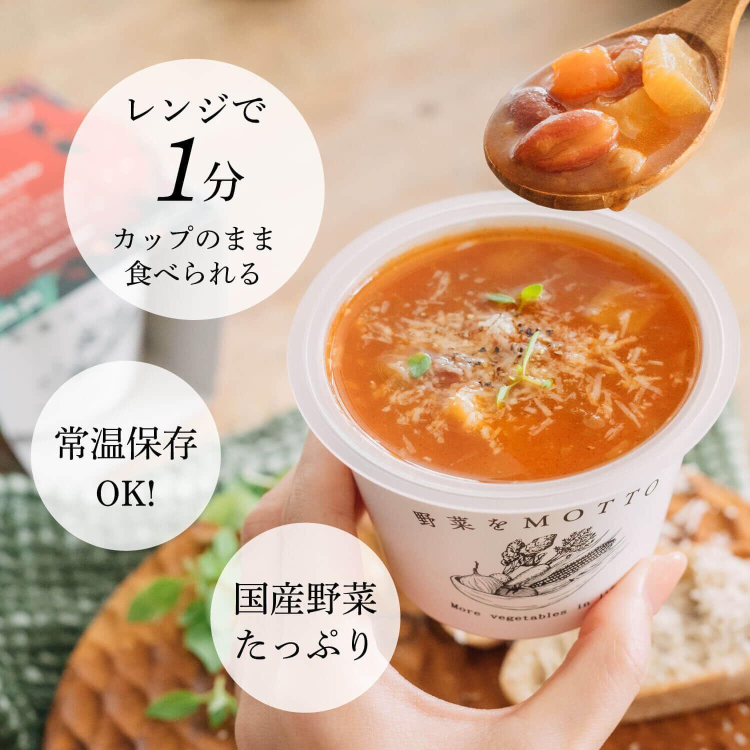 【野菜をMOTTO】レンジで1分、国産野菜たっぷりのカップスープ6個セット|レトルト 常温保存|朝食・ランチ・夜食に最適