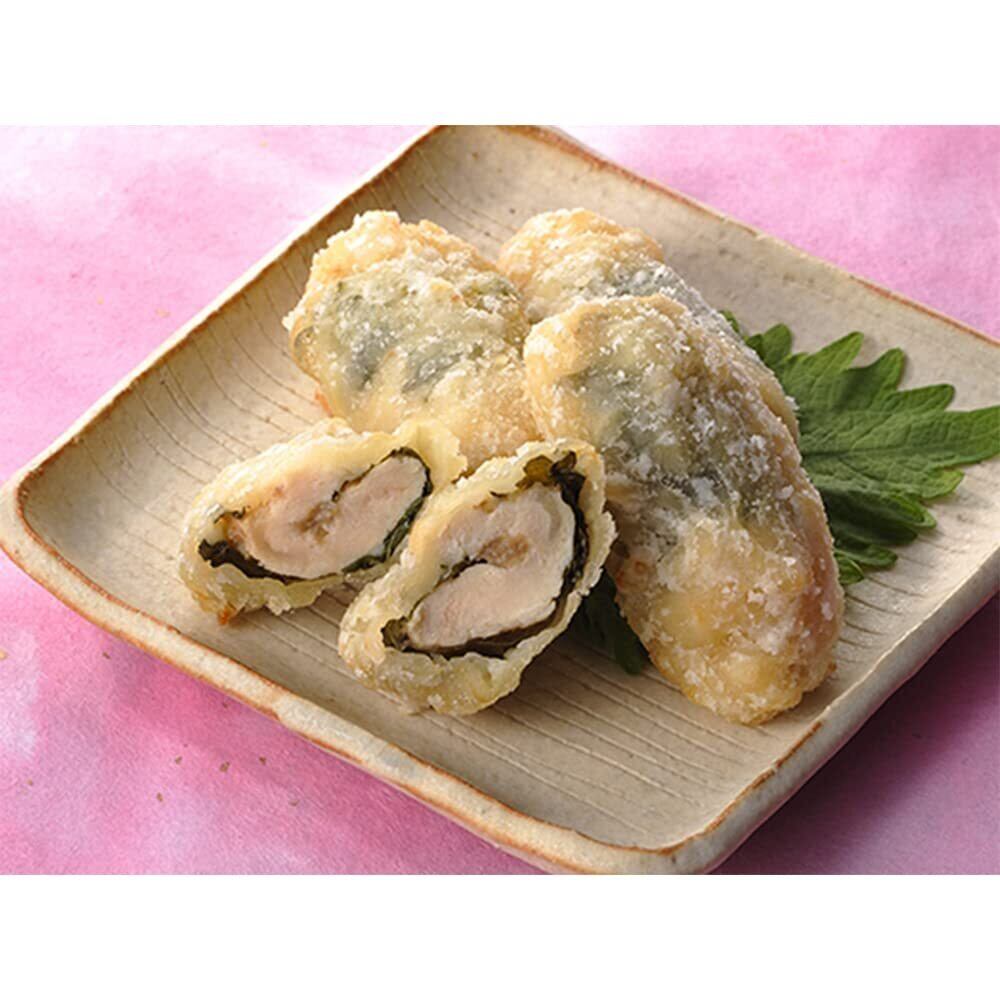 梅肉をささみとしそで巻いた、ひと口サイズの竜田揚げです。惣菜はもちろん、お酒のおつまみやお弁当の副菜にも最適です。
