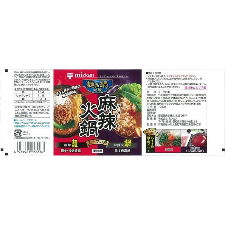 ミツカン 麺&鍋大陸 麻辣火鍋スープの素 1080g 鍋の素 ラーメンスープ