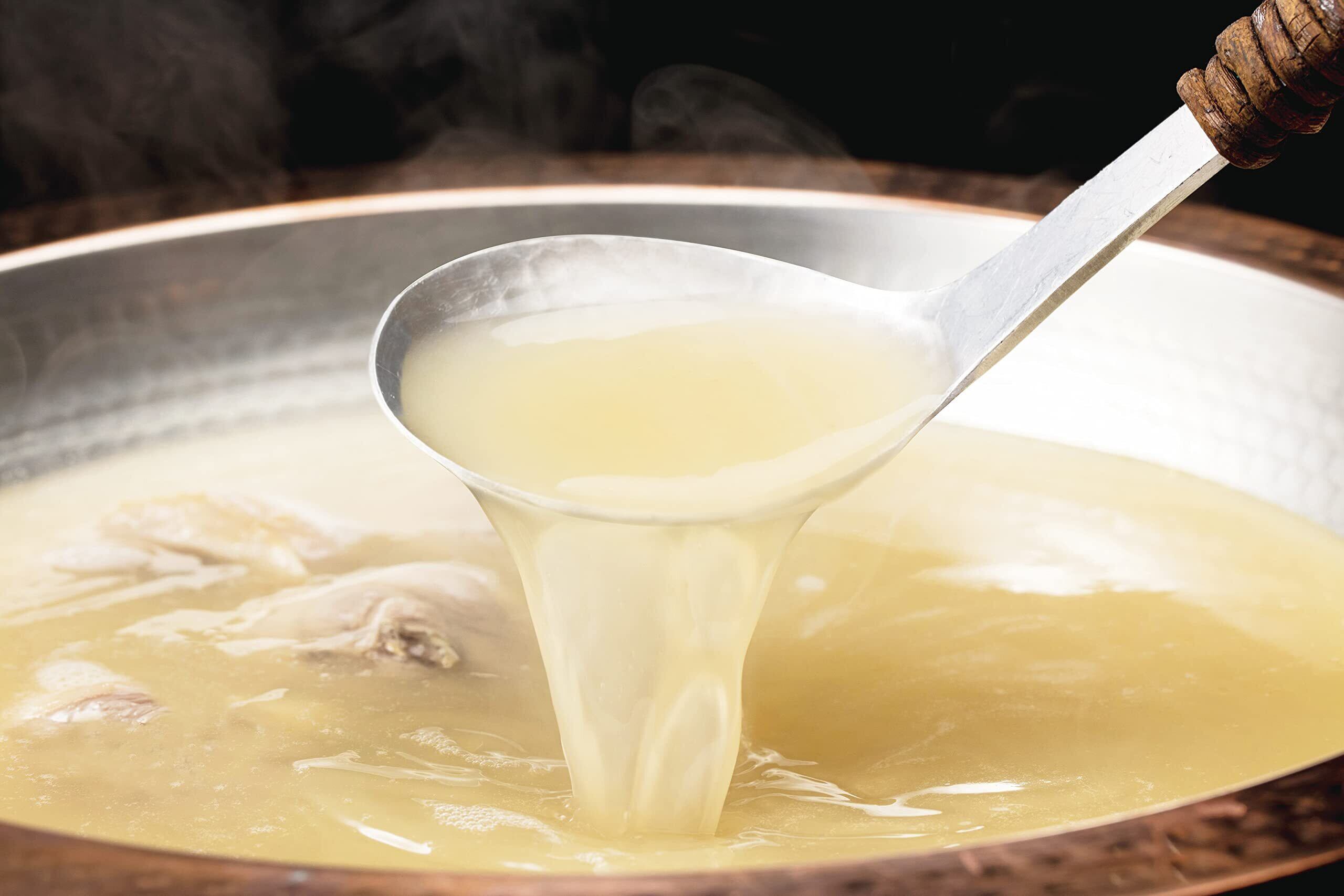 料亭「博多華味鳥」で味わう水たきスープと同じ素材・同じ製法にて炊き出されたスープを使用しています
