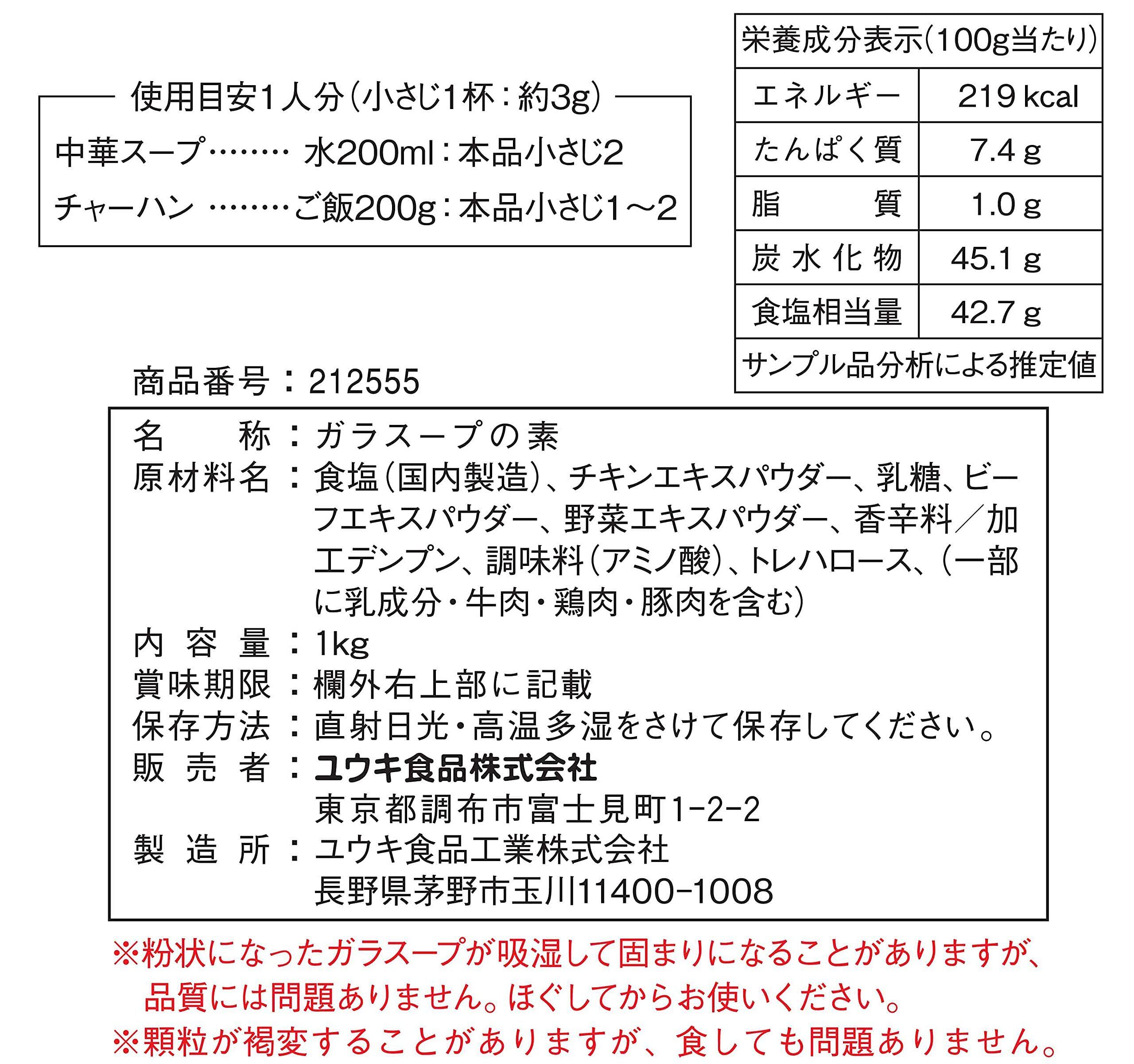 ユウキ ガラスープ 1kg【こだわりのダシで、家庭料理がランクアップ!】