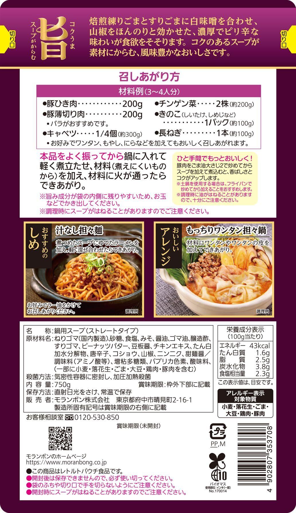 モランボン コク旨スープがからむ ごま担々鍋用スープ 750g×10個【贅沢な旨みが広がる!】