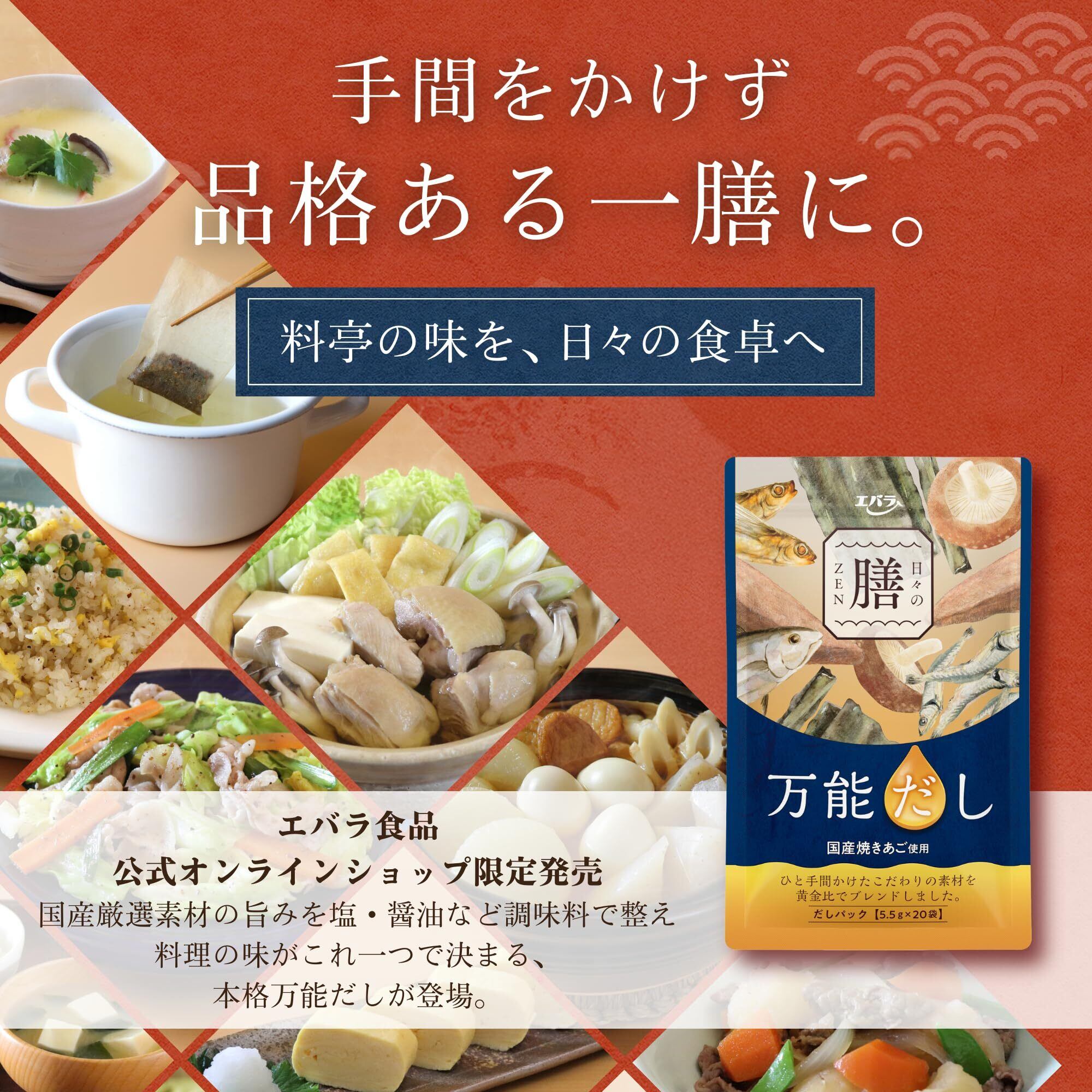 「エバラ だしパック/日々の膳 万能だし」で、手間なく本格的な和風料理を楽しみ、心温まるひとときをお過ごしください!