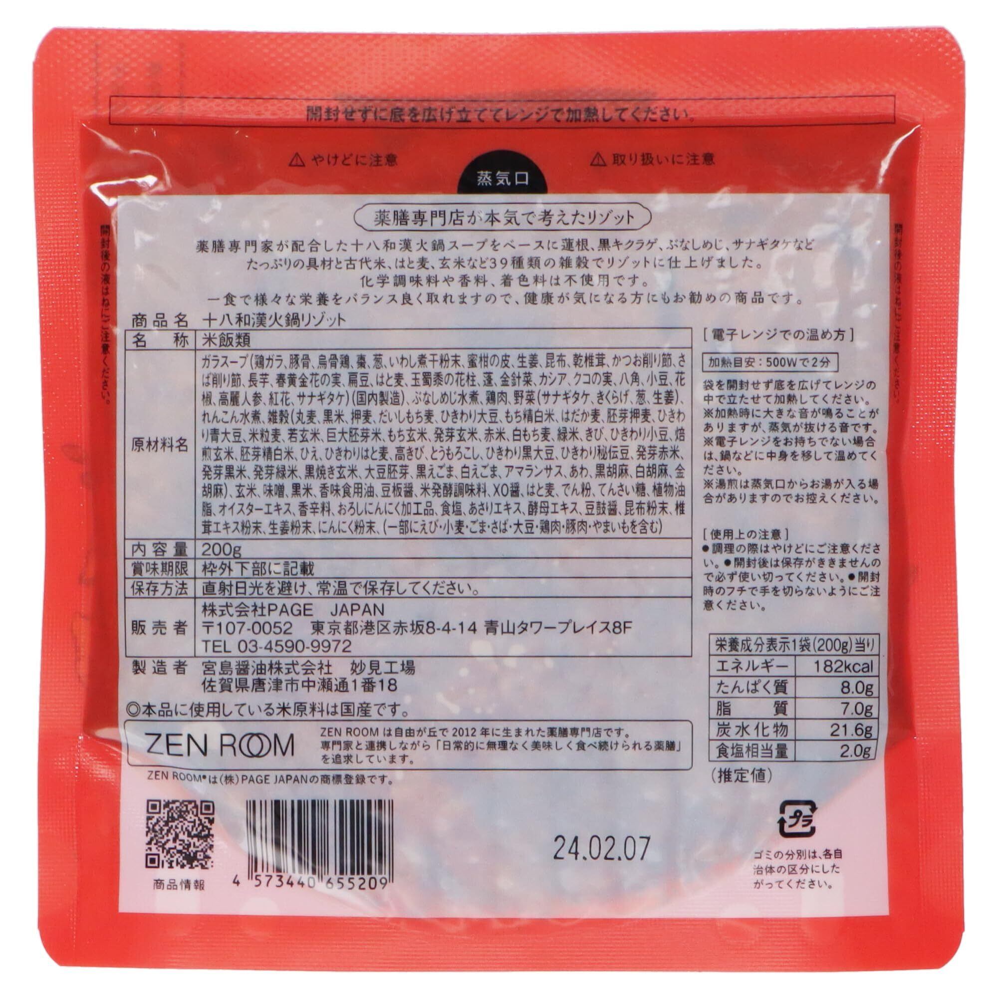 ZEN ROOM リゾット 火鍋スープ 【十八和漢火鍋スープでつくった三十九雑穀リゾット】 200g (1人前)×4袋【ヘルシーに楽しむリゾット!】
