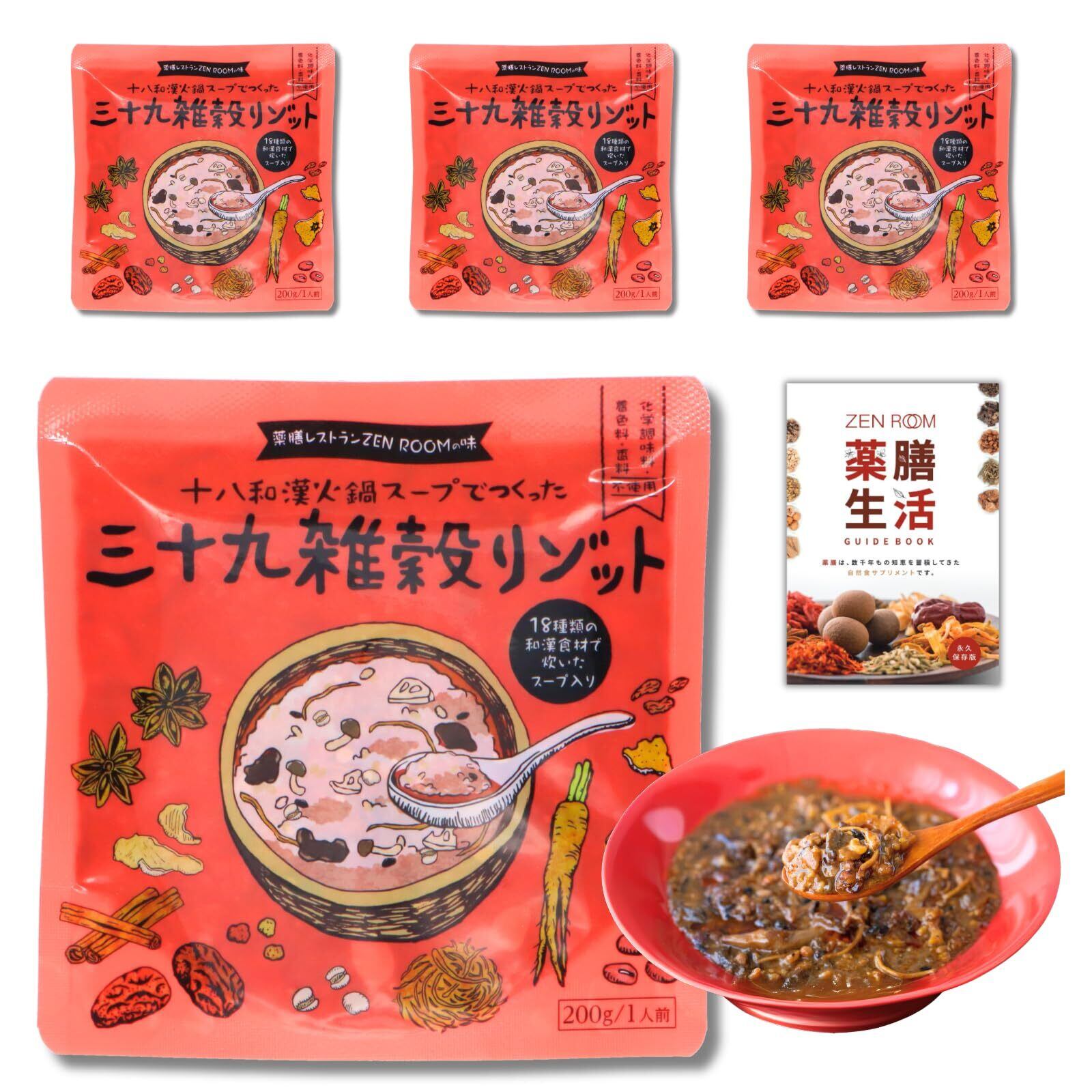 ZEN ROOM リゾット 火鍋スープ 【十八和漢火鍋スープでつくった三十九雑穀リゾット】 200g (1人前)×4袋 無添加スープ ヘルシー ゼンルーム