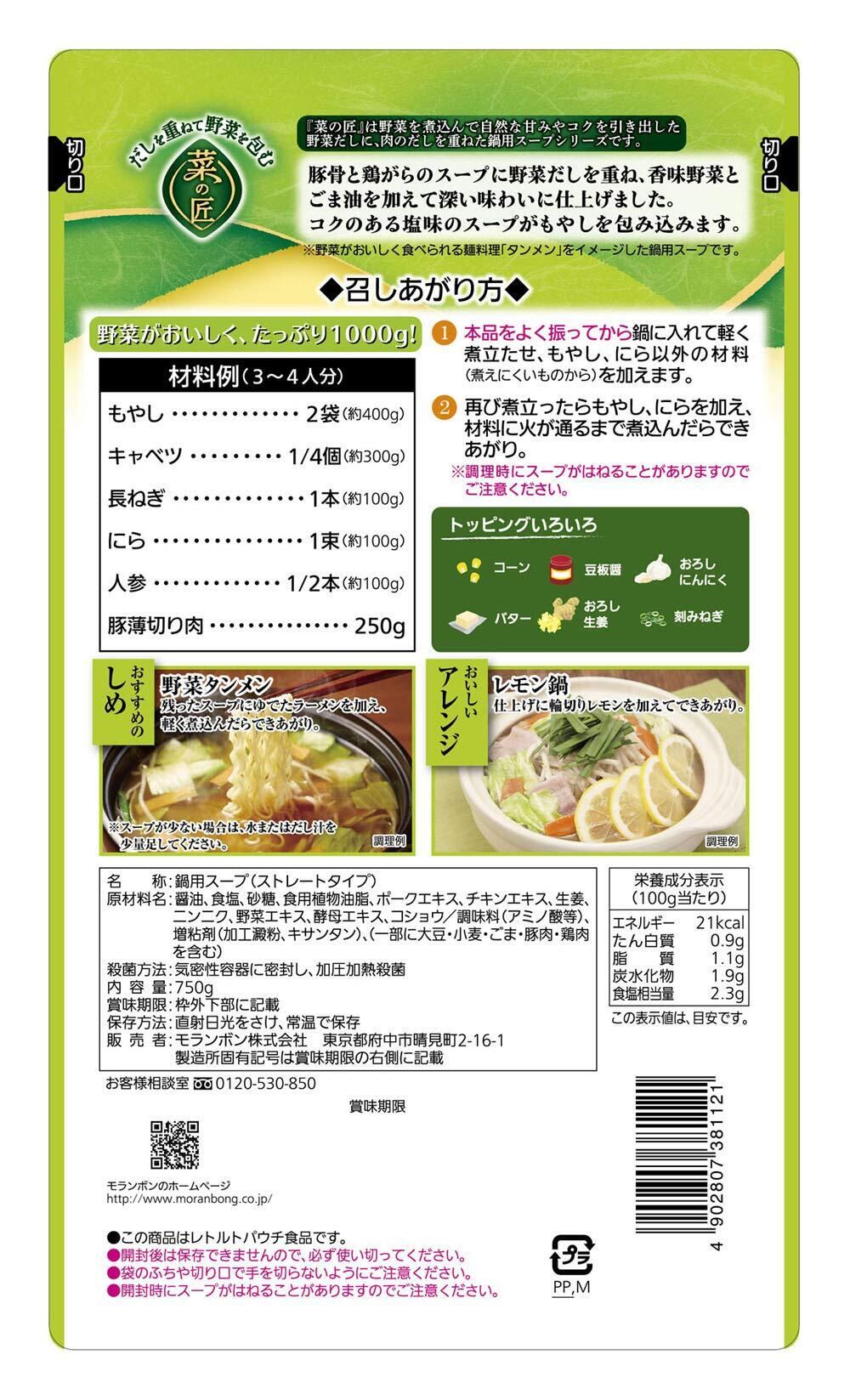 モランボン もやしタンメン鍋用スープ 750g×10袋【手軽に楽しむ本格的なタンメン鍋!】