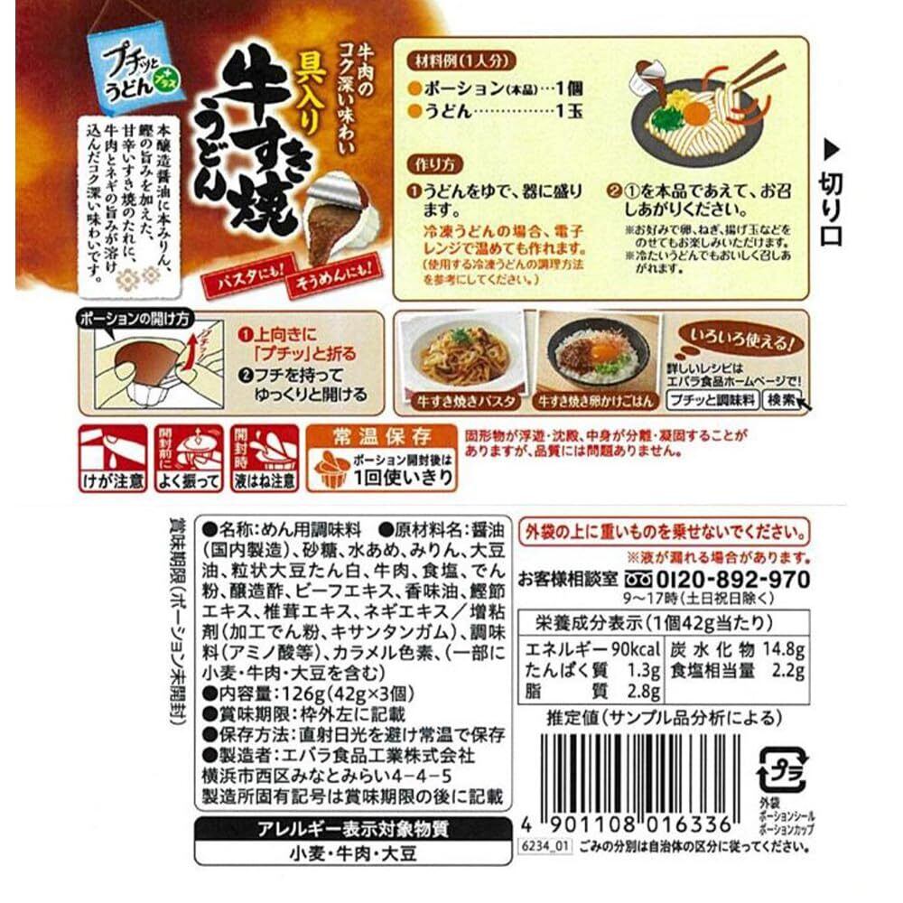 エバラ食品 プチッとうどん 具入り牛すき焼うどん 126g×3袋【手軽に楽しむ本格牛すき焼うどん!】